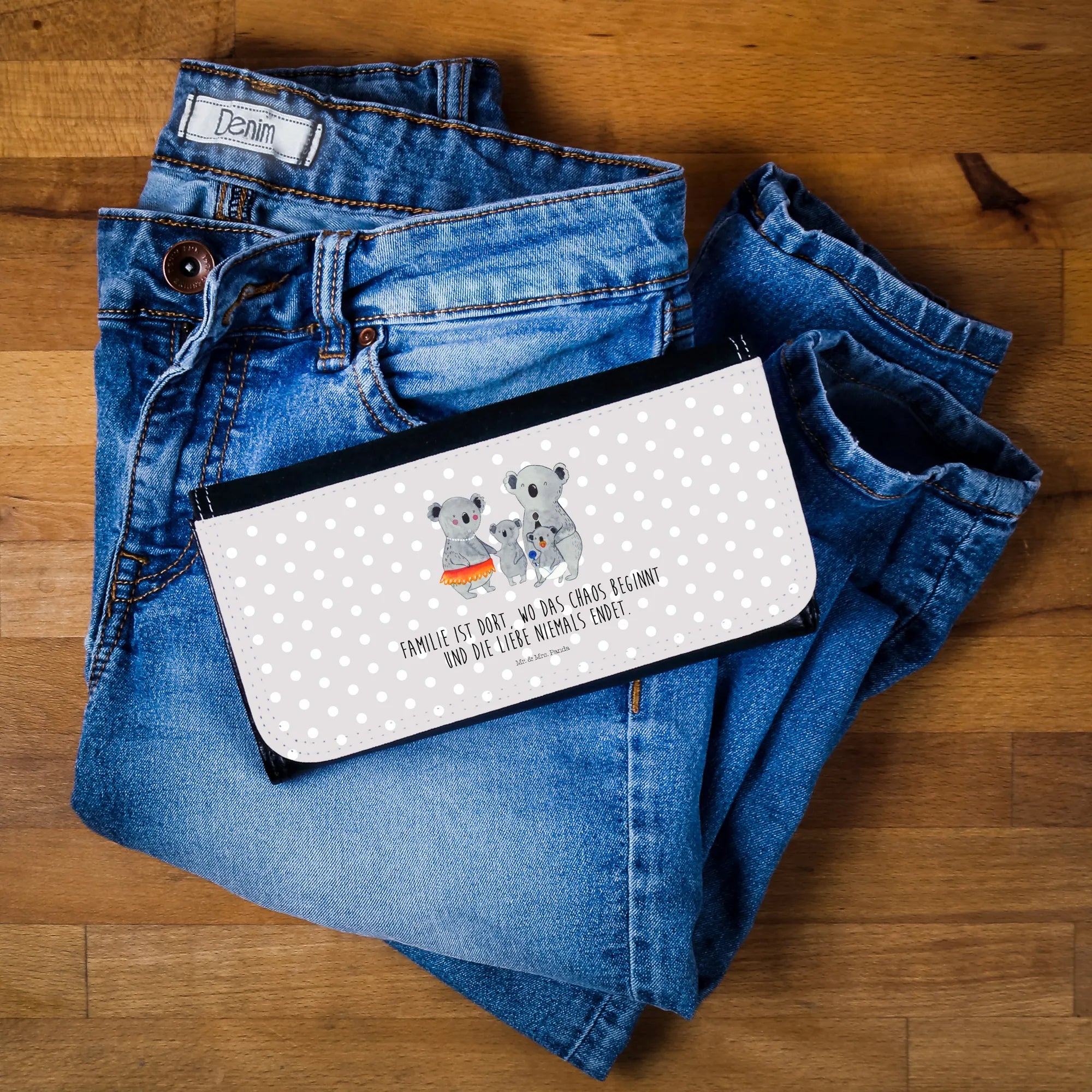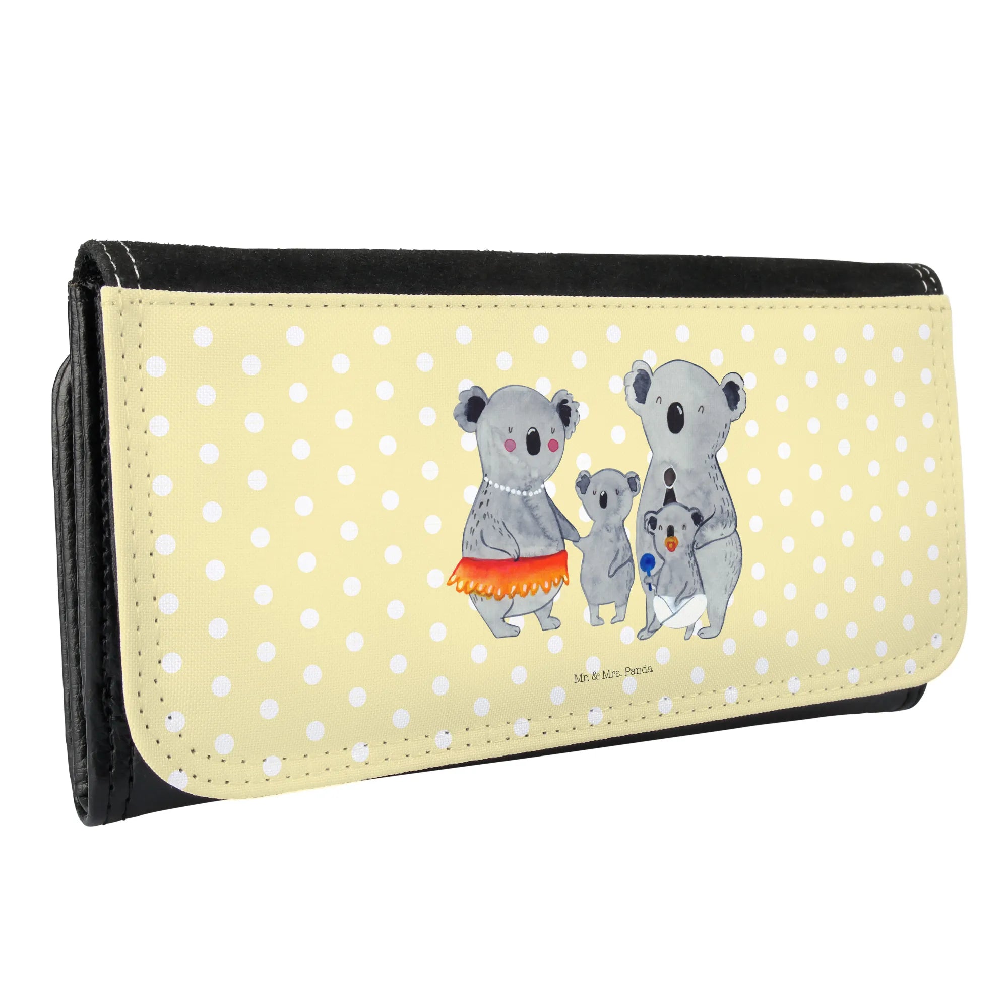 Ein bezauberndes Damen Portemonnaie von Mr. & Mrs. Panda – die Koala Familie aus unserer Familien-Kollektion begleitet dich mit Herz, Farbe und einem Lächeln durch den Alltag. Das Motiv zeigt zwei größere und zwei kleinere Koalas, liebevoll in Aquarell-Optik gezeichnet. Ergänzt wird das Design durch den herzerwärmenden Spruch: „Familie ist dort, wo das Chaos beginnt und die Liebe niemals endet.”
