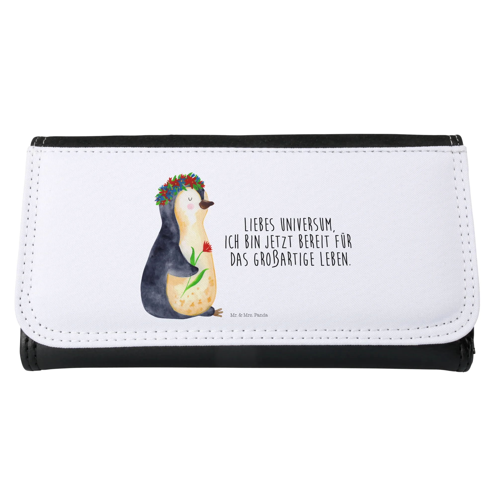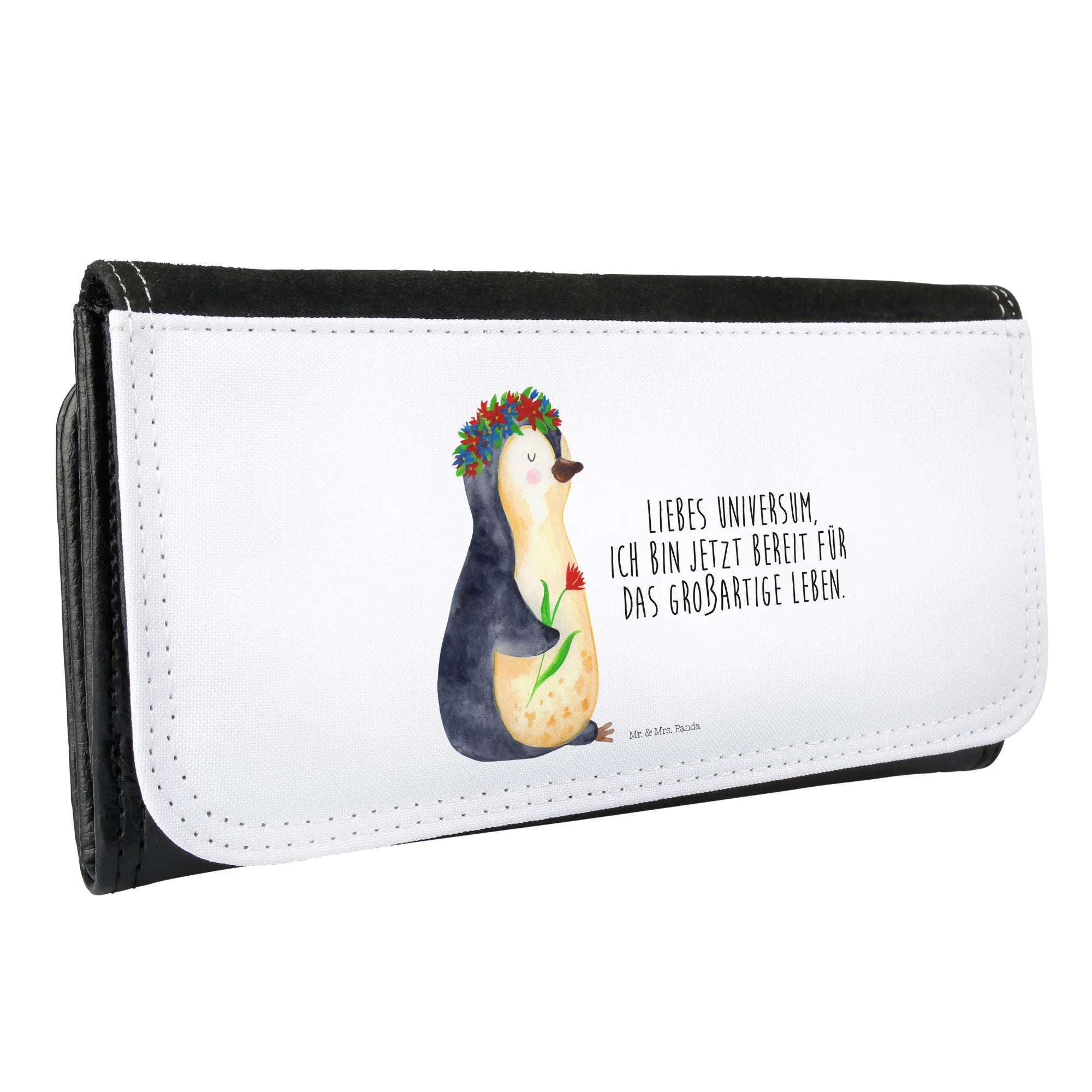 Jedes Mal, wenn die Beschenkte ihr Portemonnaie öffnet, wird sie an die liebevollen Wünsche erinnert, die in diesem kleinen, süßen Accessoire stecken. Ob für Liebeskummer, Lebensziele oder einfach nur für die täglichen Kleinigkeiten – das Pinguin Blumenkranz Portemonnaie ist ein Statement: „Liebes Universum, ich bin jetzt bereit für das großartige Leben.“ Gib Freude weiter, indem Du dieses bezaubernde Portemonnaie wählst, und werde Teil der Mr. & Mrs. Panda Familie.