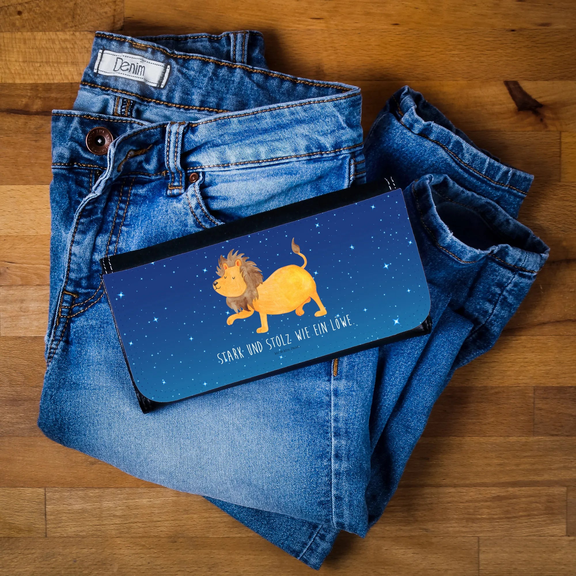 Stell dir vor, du öffnest deine Handtasche und wirst von einem prachtvollen, kleinen Löwen angelächelt. Unser Damen Portemonnaie von Mr. & Mrs. Panda mit dem Motiv Sternzeichen Löwe ist der perfekte Begleiter für alle, die ihre Stärke gerne mit einem Schmunzeln zeigen. 🦁