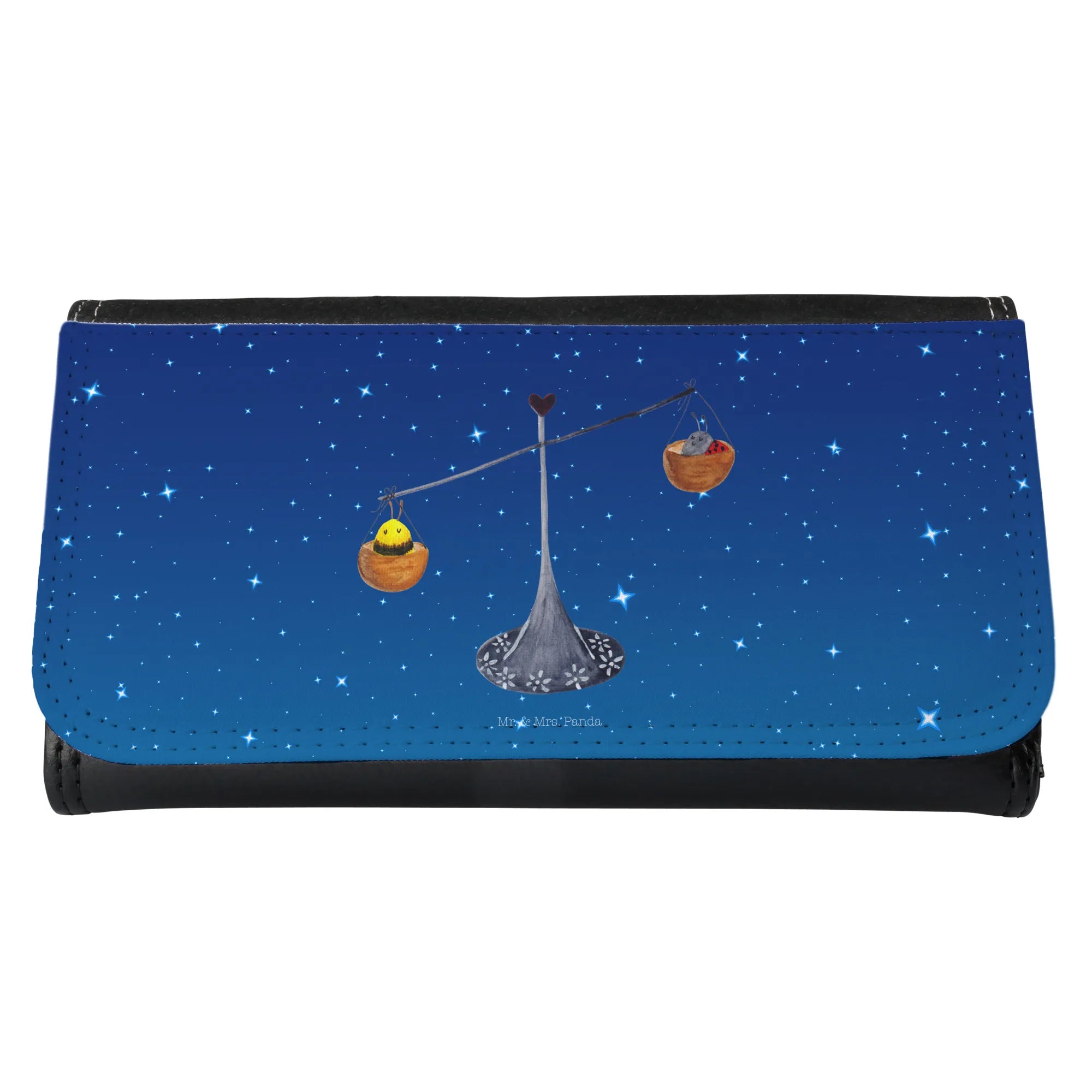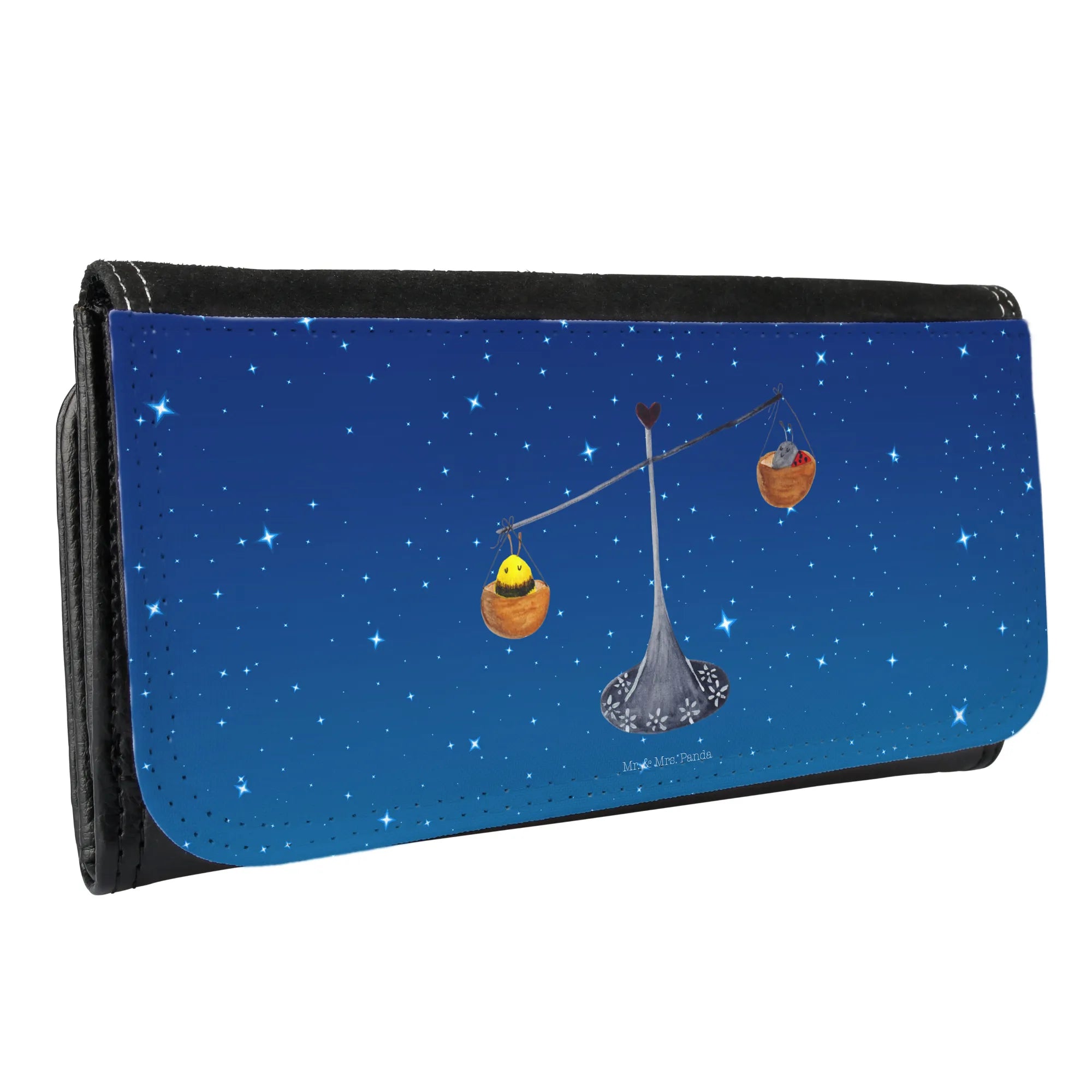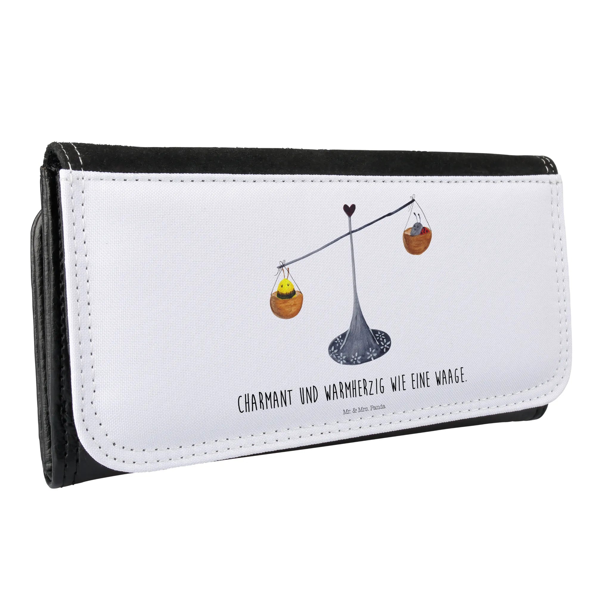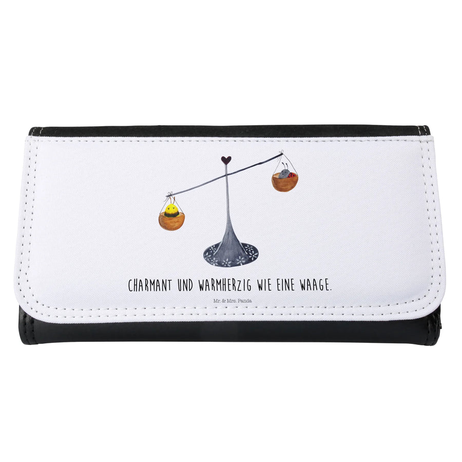 Entdecke das perfekte Damen Portemonnaie mit dem zauberhaften Sternzeichen-Motiv der Waage von Mr. & Mrs. Panda! Dieses wunderschöne Portemonnaie ist nicht nur praktisch, sondern auch ein echter Hingucker. präsentiert mit einer charmanten Zeichnung von einer Waage, einem Marienkäfer und einer Hummel, verkörpert es das Motto 'Charmant und warmherzig wie eine Waage'. Gefertigt aus hochwertigem Premium Kunstleder, bietet es Robustheit und Langlebigkeit.
