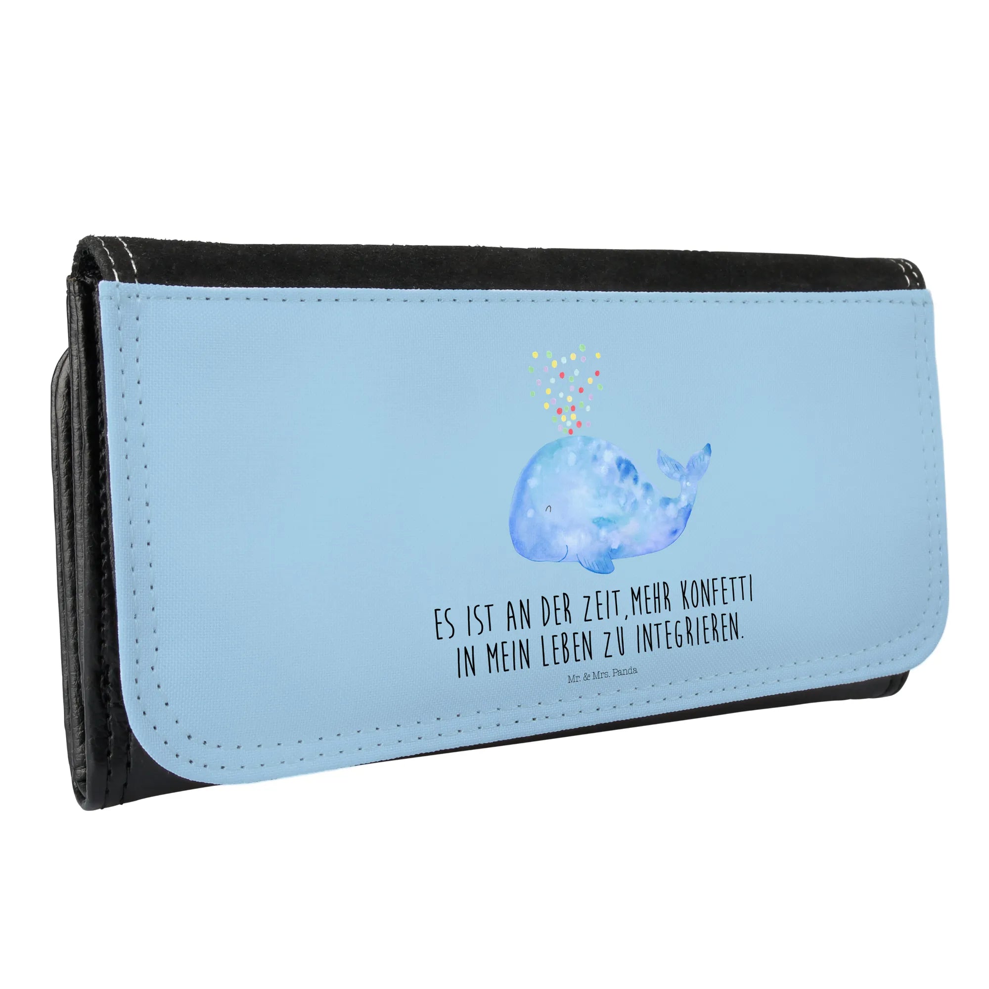 Ein wunderschönes Damen Portemonnaie von Mr. & Mrs. Panda – liebevoll illustriert mit dem bezaubernden Motiv „Wal Konfetti“ aus unserer Meerestiere Kollektion. Der freundliche, blaue Wal mit seiner Konfetti-Wolke und dem Spruch „Es ist an der Zeit, mehr Konfetti in mein Leben zu integrieren.“ bringt ein Lächeln in deinen Alltag und macht dieses Portemonnaie zur perfekten Geschenkidee.
