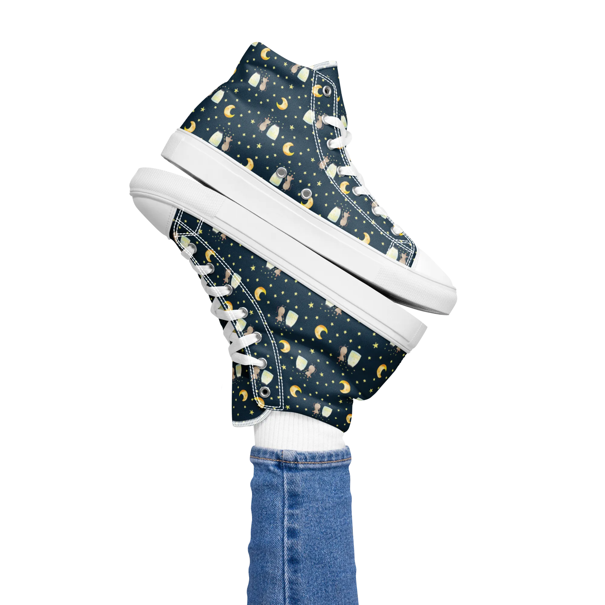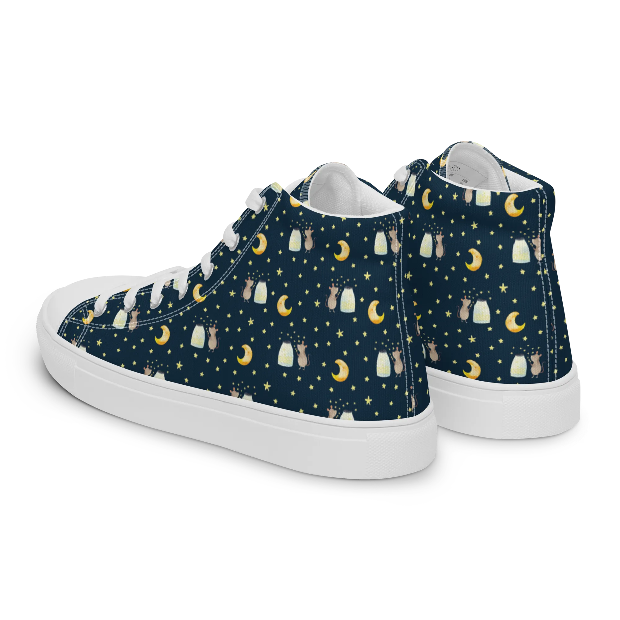 Erlebe den einzigartigen Look unserer handgefertigten Damen Sneaker von Mr. & Mrs. Panda! Diese High-Top Sneaker verbinden retro-charmante Designs mit modernem Komfort. Aus erstklassigen Materialien gefertigt, bieten sie dir sowohl Stil als auch Funktionalität. Der gepolsterte Kragen sorgt für besten Tragekomfort, und die Kunstleder-Zehenkappe schützt deine Füße. Außerdem ermöglicht die abnehmbare Innensohle eine individuelle Anpassung. Maße: Höhe 12 cm, Breite 9 cm, Länge 27 cm.