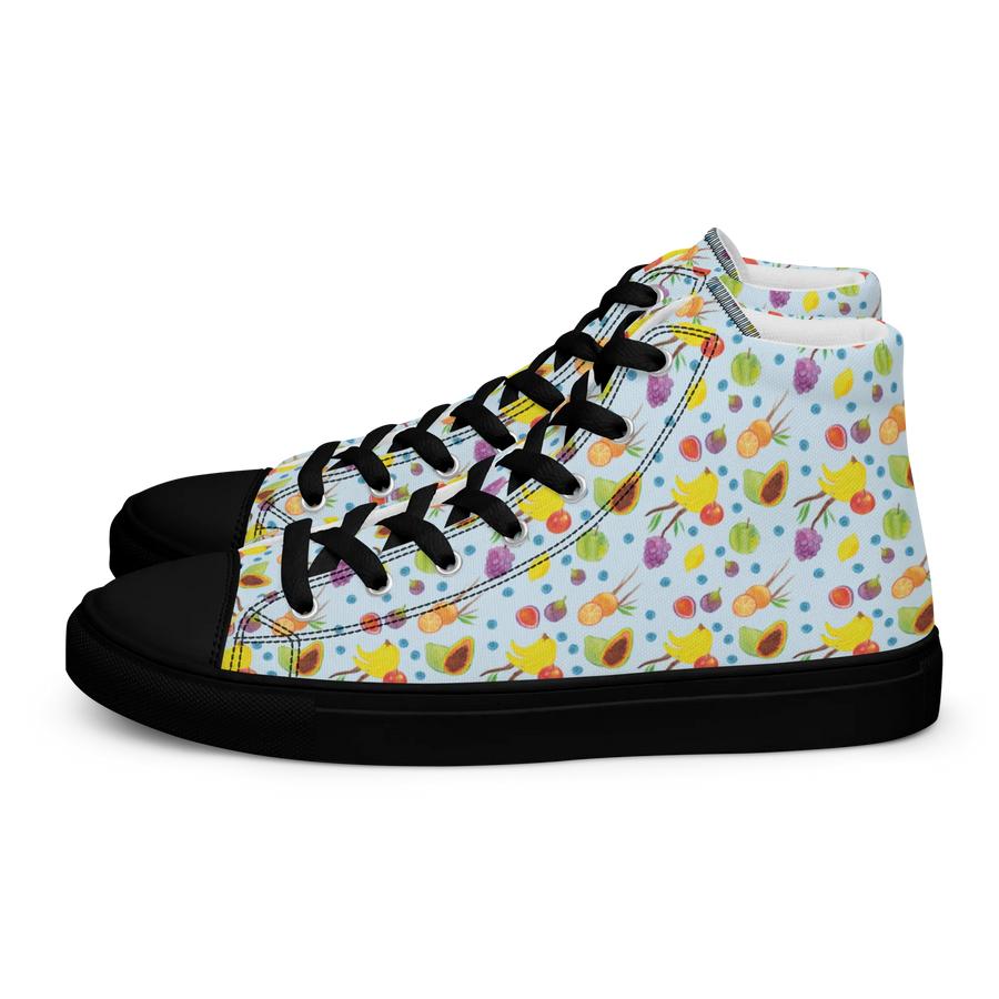 Die schwarze Sohle und der coole Retro-Charakter dieser High-Top-Sneaker machen sie zum idealen Begleiter für jedes Outfit. Die fruchtigen Motive verleihen den Schuhen einen fröhlichen Touch, während die qualitativ hochwertigen Materialien dafür sorgen, dass du lange Freude daran hast. Gefertigt aus 100% Mikrofaser und Leinen, sind sie nicht nur leicht, sondern auch besonders pflegeleicht – ein einfaches Abwischen genügt, um sie sauber zu halten!