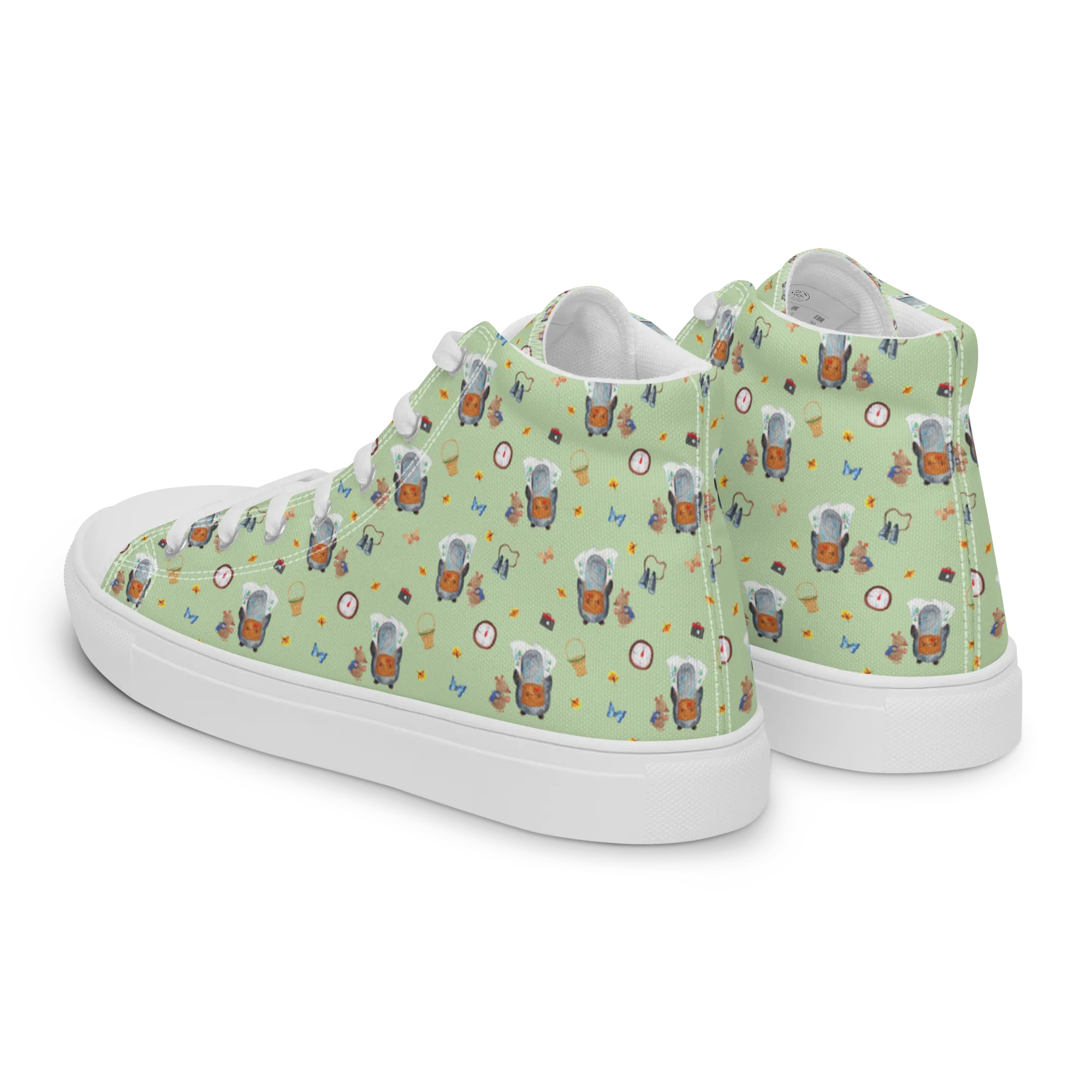 Ein besonderes Motiv: Der neugierige Pinguin blickt auf eine detaillierte Landkarte, während die schlaue Maus den Kompass prüft. Das handgezeichnete Aquarellmotiv macht jeden Sneaker zu einem Unikat und erinnert an Roadtrips, Wanderungen und kleine alltägliche Ausflüge.