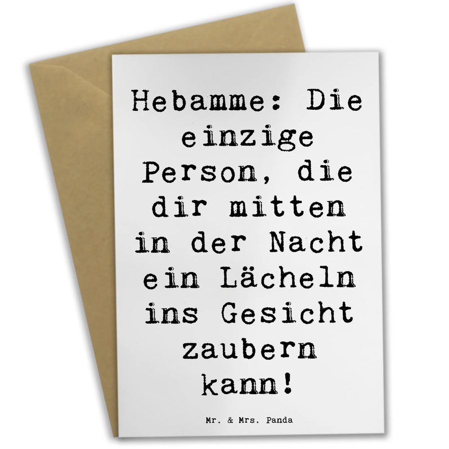 Du suchst das perfekte Geschenk für eine Hebamme oder eine liebevolle Karte, um Dankbarkeit für ihre Arbeit auszudrücken? Dann ist die Grußkarte "Hebamme: Die einzige Person, die dir mitten in der Nacht ein Lächeln ins Gesicht zaubern kann!" aus der exklusiven Kollektion Berufe von Mr. & Mrs. Panda genau das Richtige für dich!