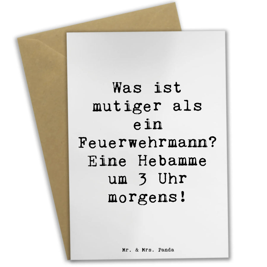Diese wunderschöne Grußkarte von Mr. & Mrs. Panda ist das perfekte Geschenk für alle Hebammen und ihre Unterstützer! Mit viel Liebe zum Detail wurde diese Karte mit dem humorvollen Spruch "Was ist mutiger als ein Feuerwehrmann? Eine Hebamme um 3 Uhr morgens!" gestaltet.