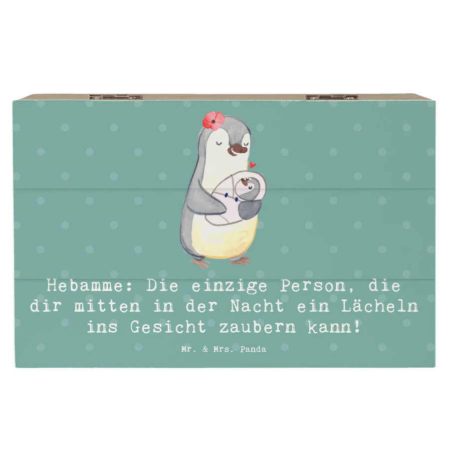 Entdecke die zauberhafte Holzkiste "Hebamme" von Mr. & Mrs. Panda! Diese wunderschöne, robuste Kiste ist nicht nur ein praktischer Aufbewahrungsort, sondern auch ein liebevolles Erinnerungsstück für alle Hebammen und diejenigen, die mit ihnen verbunden sind.