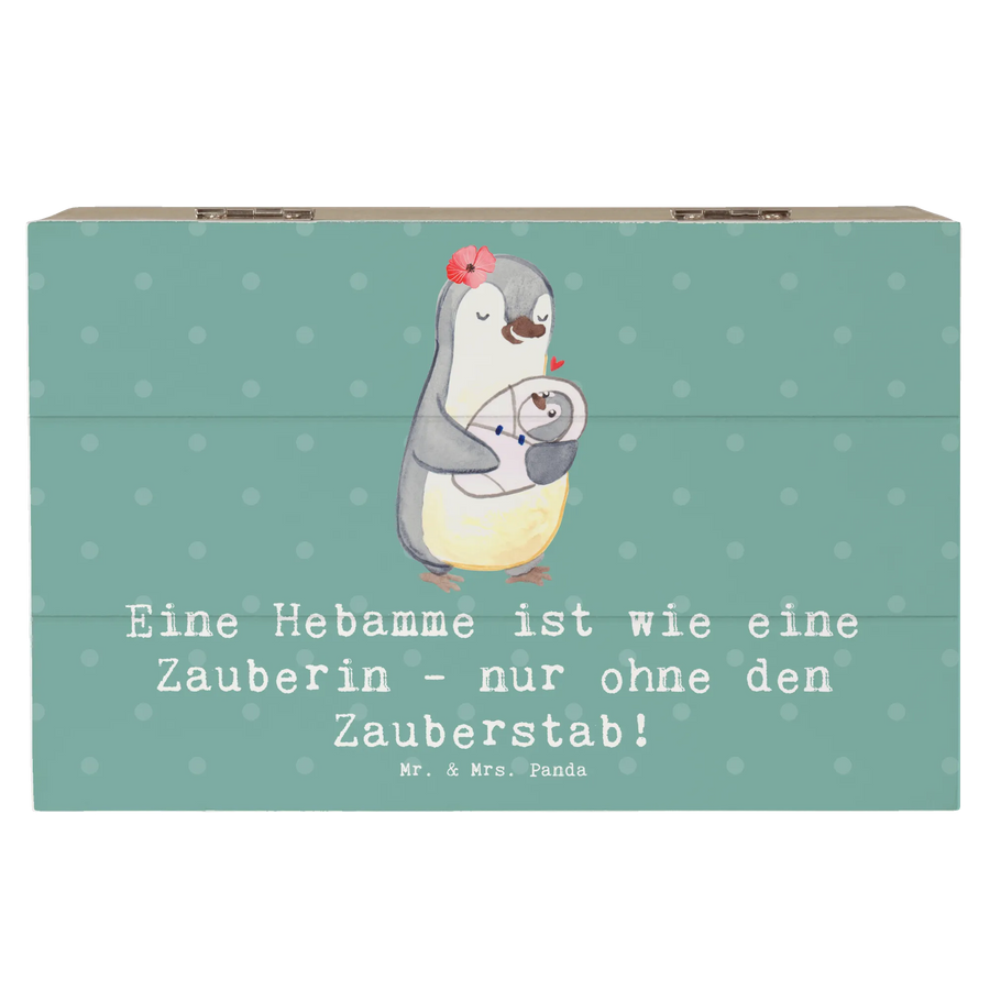 Die Holzkiste "Eine Hebamme ist wie eine Zauberin - nur ohne den Zauberstab!" von Mr. & Mrs. Panda ist das perfekte Geschenk für jeden, der die Kunst des Hebammenberufs schätzt. Mit ihrem zauberhaften Motiv und dem liebevollen Spruch wird diese Kiste nicht nur zum praktischen Aufbewahrungsort für wertvolle Erinnerungen, sondern auch zu einem stilvollen Blickfang in jedem Raum.