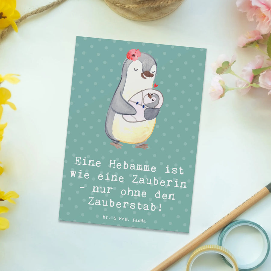 Entdecke die bezaubernde Postkarte "Eine Hebamme ist wie eine Zauberin - nur ohne den Zauberstab!" aus der Kollektion Berufe von Mr. & Mrs. Panda!