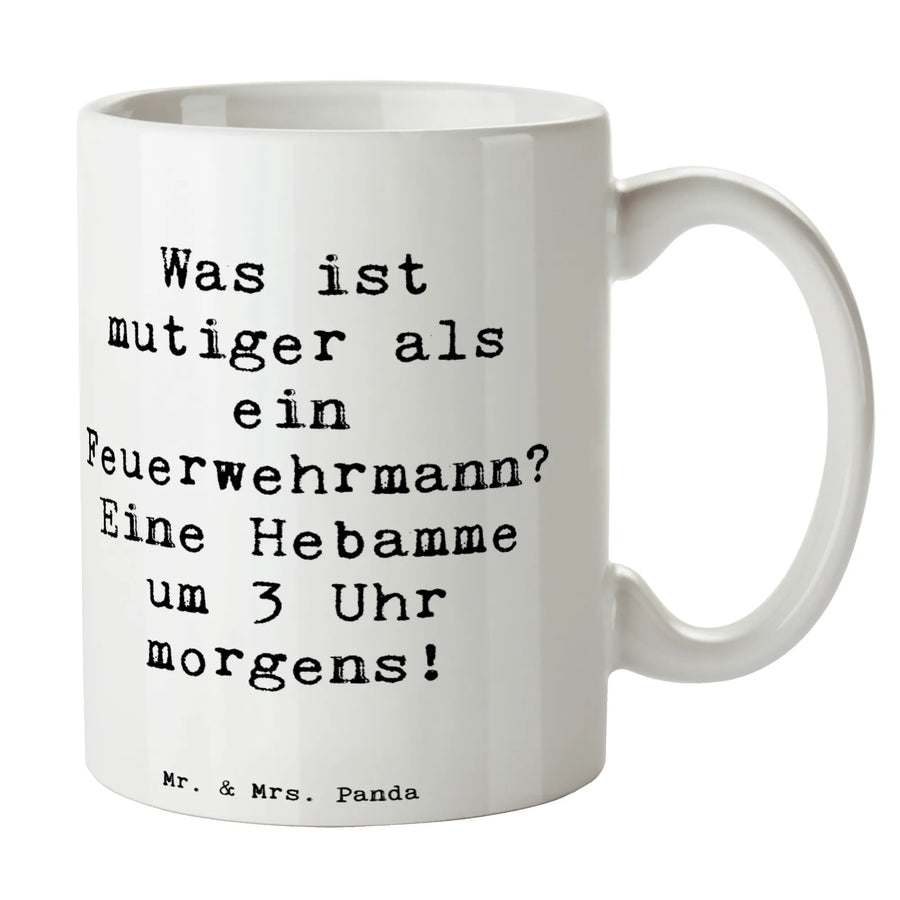 Mit dem liebevoll gestalteten Spruch "Was ist mutiger als ein Feuerwehrmann? Eine Hebamme um 3 Uhr morgens!" bringt die Tasse ein Lächeln in den Alltag jeder Hebamme. Ob zur Geburtstagsfeier, zum Berufsabschied oder einfach als kleine Aufmerksamkeit zwischendurch – diese Tasse ist immer eine wunderbare Wahl!