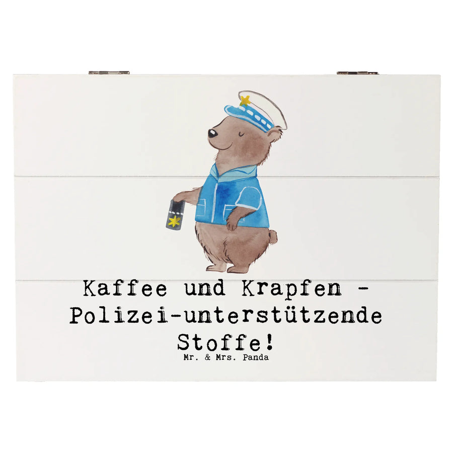 Die wunderschöne Holzkiste von Mr. & Mrs. Panda ist mehr als nur ein Aufbewahrungsort - sie ist eine Schatztruhe für Deine wertvollsten Erinnerungen! Mit einem liebevoll gestalteten Motiv eines Polizisten und dem witzigen Slogan "Kaffee und Krapfen - Polizei-unterstützende Stoffe!" bringt diese Kiste nicht nur Freude, sondern auch eine Portion Humor in Deinen Alltag.