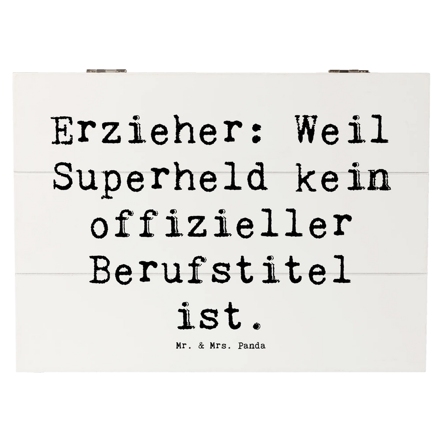 Die wunderschöne Holzkiste von Mr. & Mrs. Panda mit dem liebevollen Motiv „Erzieher: Weil Superheld kein offizieller Berufstitel ist“ ist das perfekte Geschenk für alle, die im Bereich der Erziehung arbeiten. Diese Kiste ist nicht nur ein praktischer Aufbewahrungsort für besondere Schätze wie Erinnerungen, Fotos oder kleine Geschenke, sondern auch ein echter Hingucker und eignet sich besonders gut für festliche Anlässe wie Kommunion, Konfirmation oder auch Jubiläen.