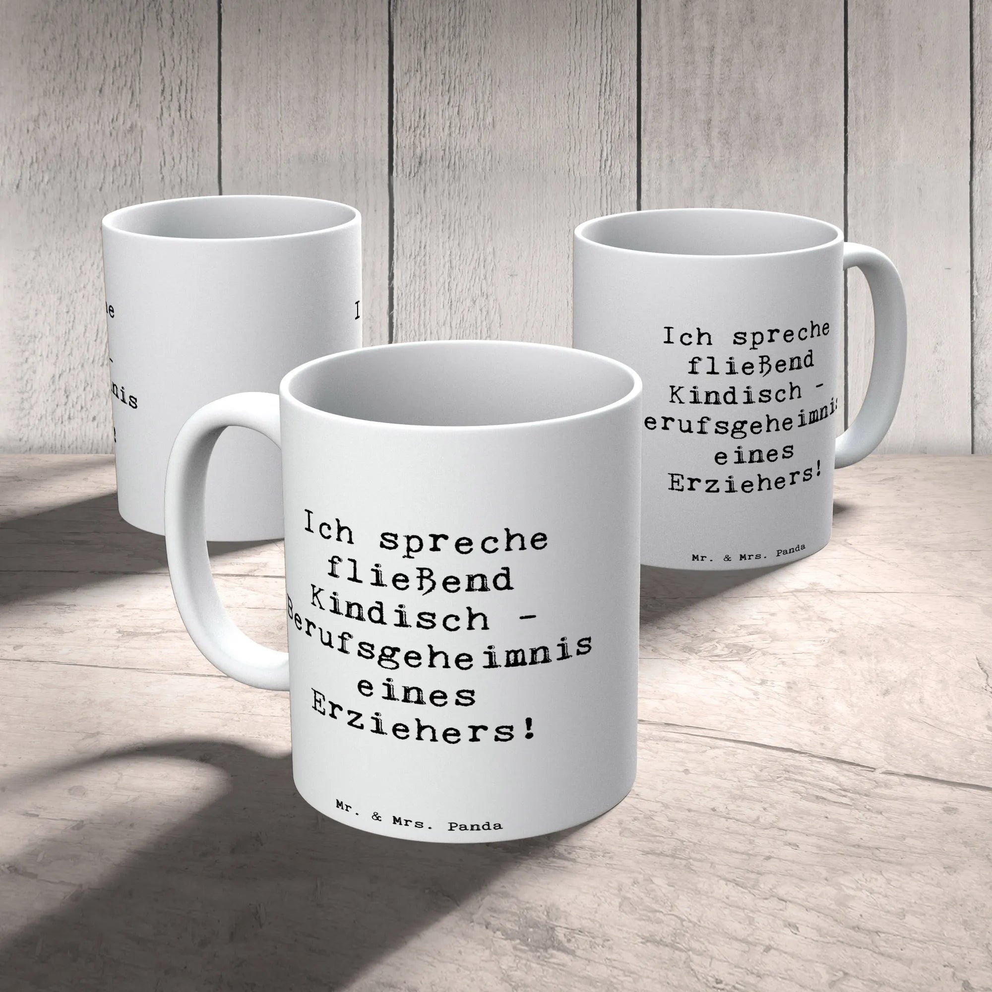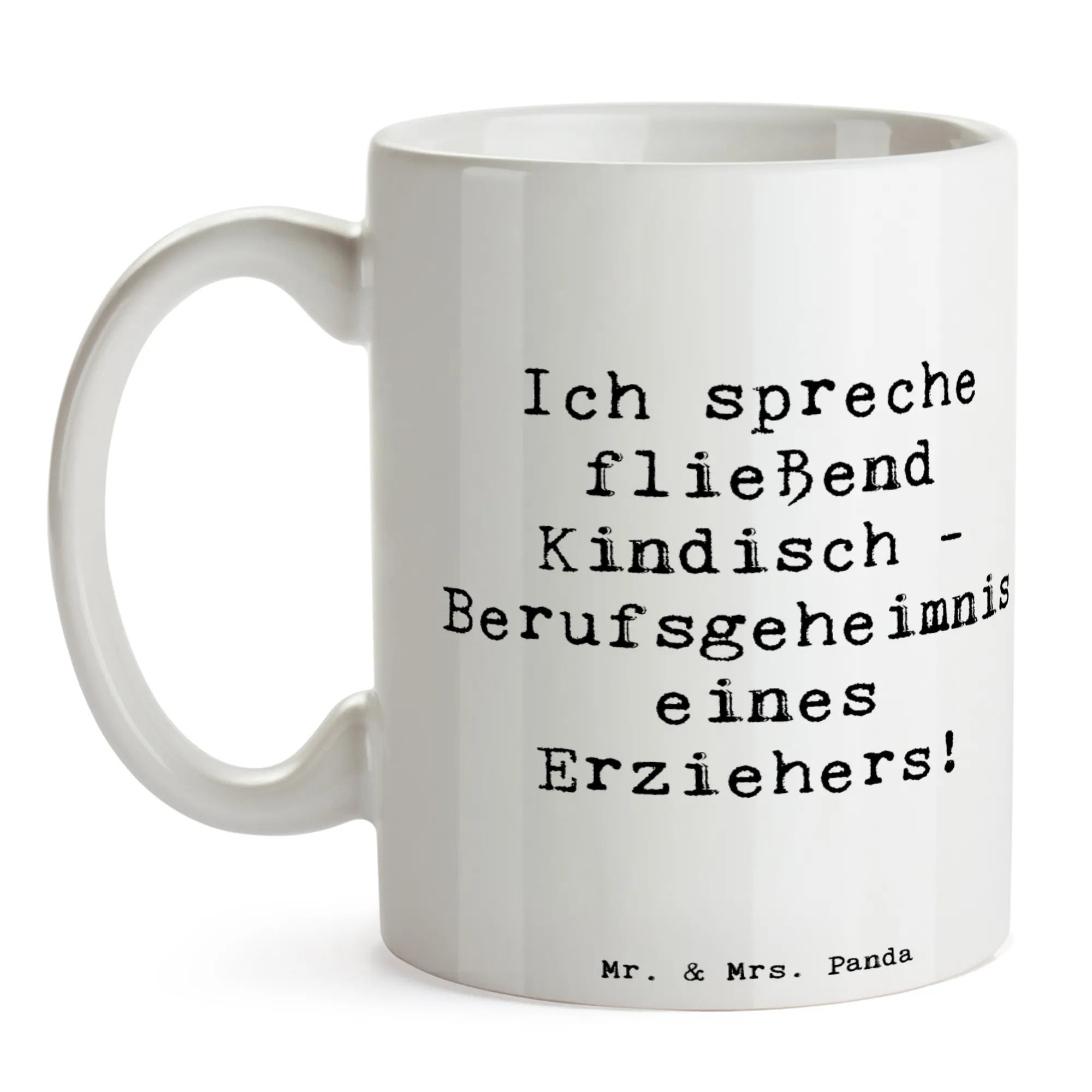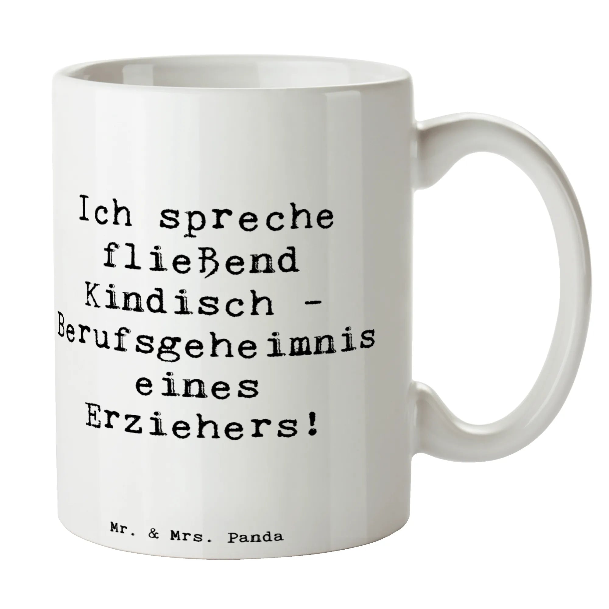 Die perfekte Tasse für Erzieher und Erzieherinnen aus der bezaubernden Berufe-Kollektion von Mr. & Mrs. Panda! Diese einmalige Keramiktasse begeistert nicht nur durch ihr charmantes Design, sondern auch durch den humorvollen Spruch: "Ich spreche fließend Kindisch - Berufsgeheimnis eines Erziehers!"