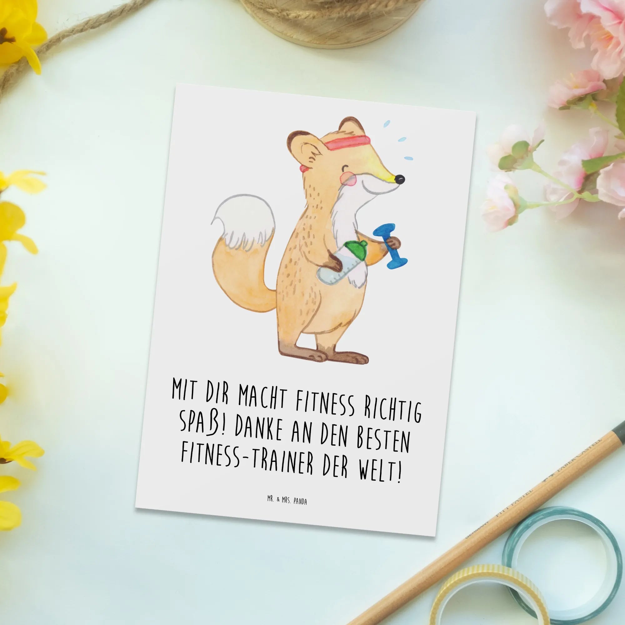 Die einzigartige Postkarte von Mr. & Mrs. Panda mit dem süßen Motiv eines Fitness-Trainers ist das perfekte Dankeschön für Deinen liebsten Trainer! Egal ob zum Geburtstag, als kleines Aufmerksamkeitsgeschenk oder einfach nur, um "Danke" zu sagen – diese Karte bringt garantiert ein Lächeln auf die Gesichter Deiner Freunde, Familie oder Kollegen.