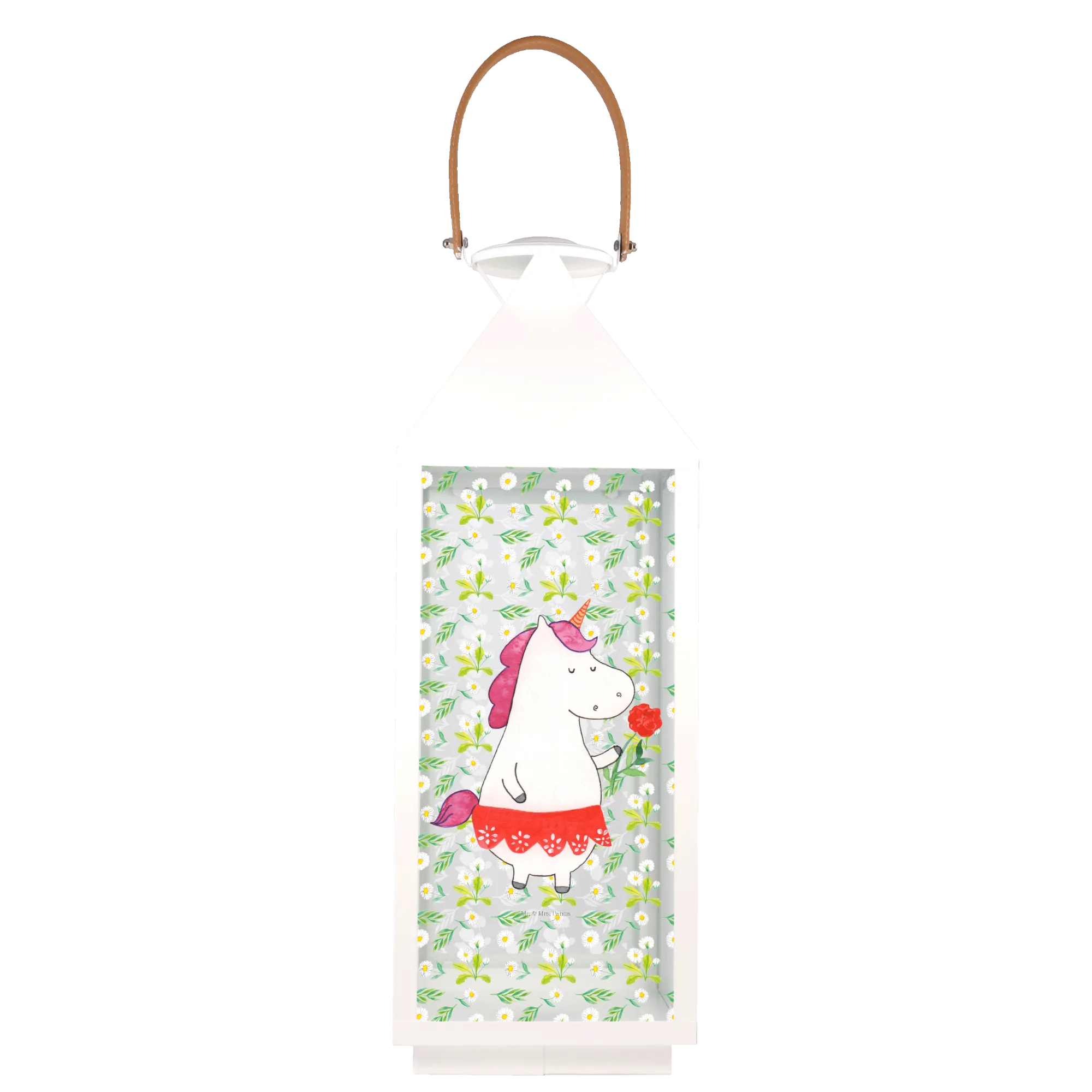Entdecke die wunderschöne Deko Laterne "Einhorn Dame" aus der zauberhaften Einhorn-Kollektion von Mr. & Mrs. Panda! Diese Laterne ist nicht nur ein echter Hingucker, sondern bringt auch einen Hauch von Magie in dein Zuhause.