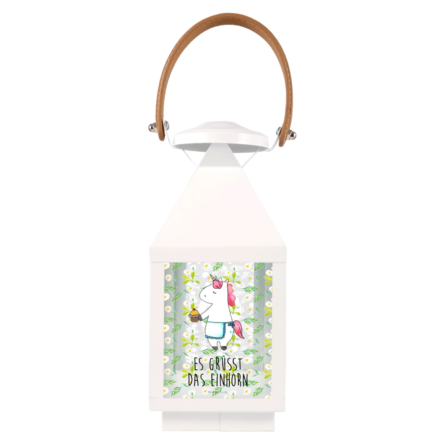 Mit ihrem liebevoll gestalteten Motiv eines niedlichen Einhorns, das stolz einen selbstgebackenen Muffin präsentiert, zaubert die Laterne jedem Betrachter ein Lächeln ins Gesicht. Der Spruch „Es grüsst das Einhorn“ ergänzt das Design perfekt und bringt etwas magische Freude in jeden Raum. Ob beim Geburtstag, als kleines Dankeschön für die Kollegin oder einfach so, um ein wenig Licht und Wärme zu verbreiten – diese Deko Laterne ist vielseitig einsetzbar.