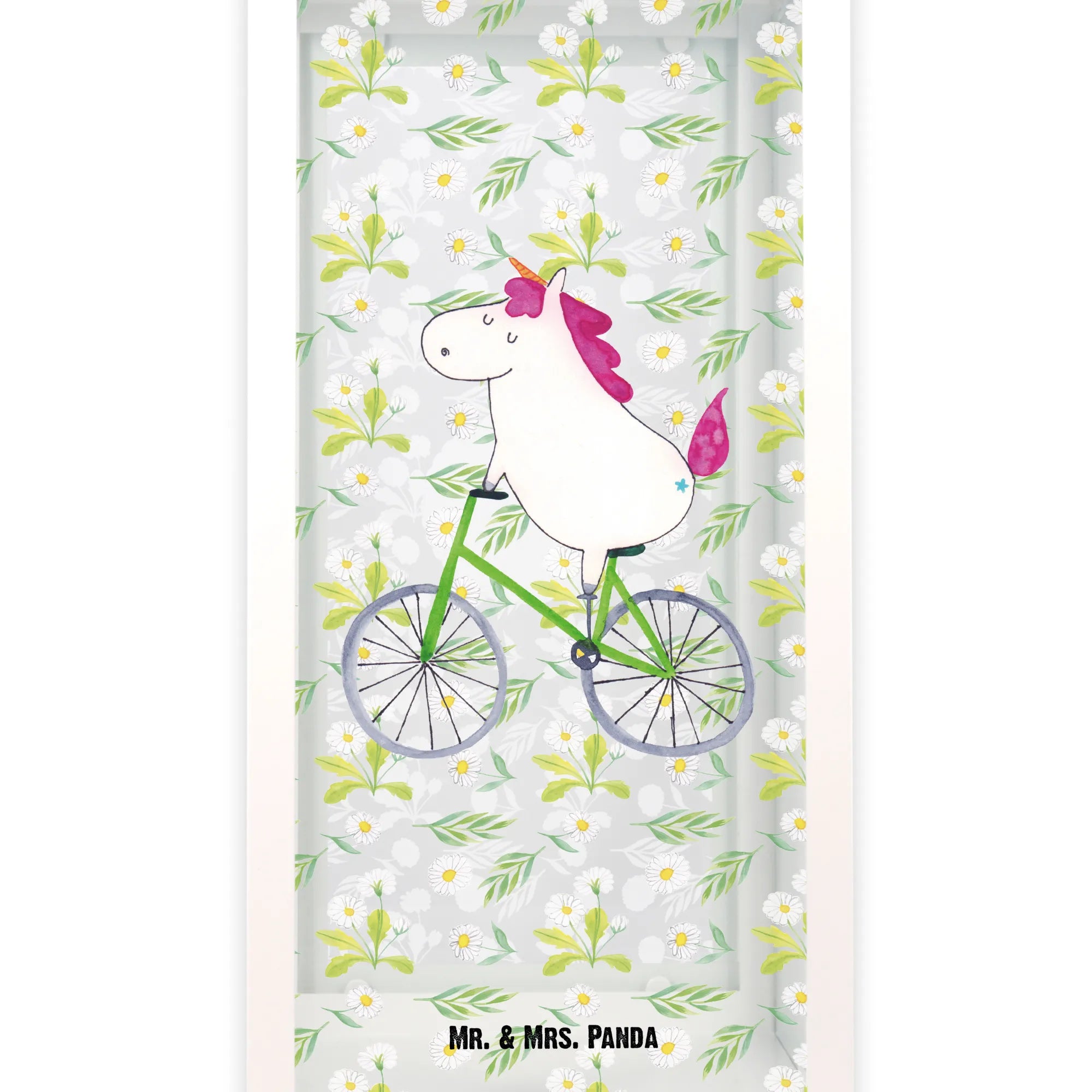 Suchst du nach einem ganz besonderen Geschenk für einen lieben Menschen? Unsere Deko Laterne "Einhorn Radfahrer" aus der zauberhaften Einhorn-Kollektion von Mr. & Mrs. Panda ist genau das Richtige! Diese Laterne zieht alle Blicke auf sich und sorgt für eine gemütliche Atmosphäre, egal ob auf der Terrasse oder dem Balkon.