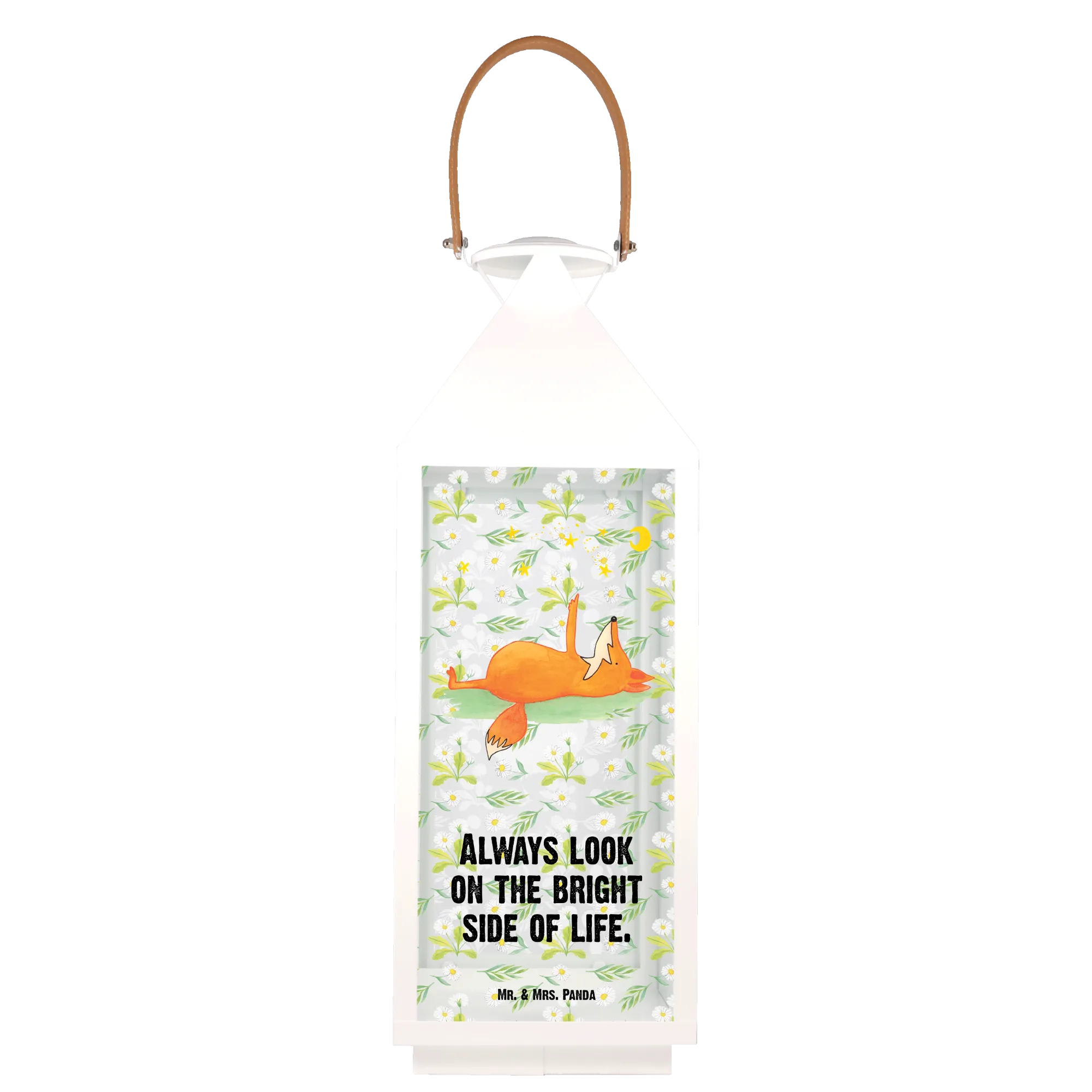Die Deko Laterne "Fuchs Sterne" von Mr. & Mrs. Panda ist die perfekte Ergänzung für deinen Garten oder Balkon! Mit ihrem liebevoll gestalteten Fuchsmotiv, das einen süßen Fuchs zeigt, der auf dem Rücken liegt und in den Sternenhimmel schaut, zaubert sie eine angenehme und romantische Atmosphäre.