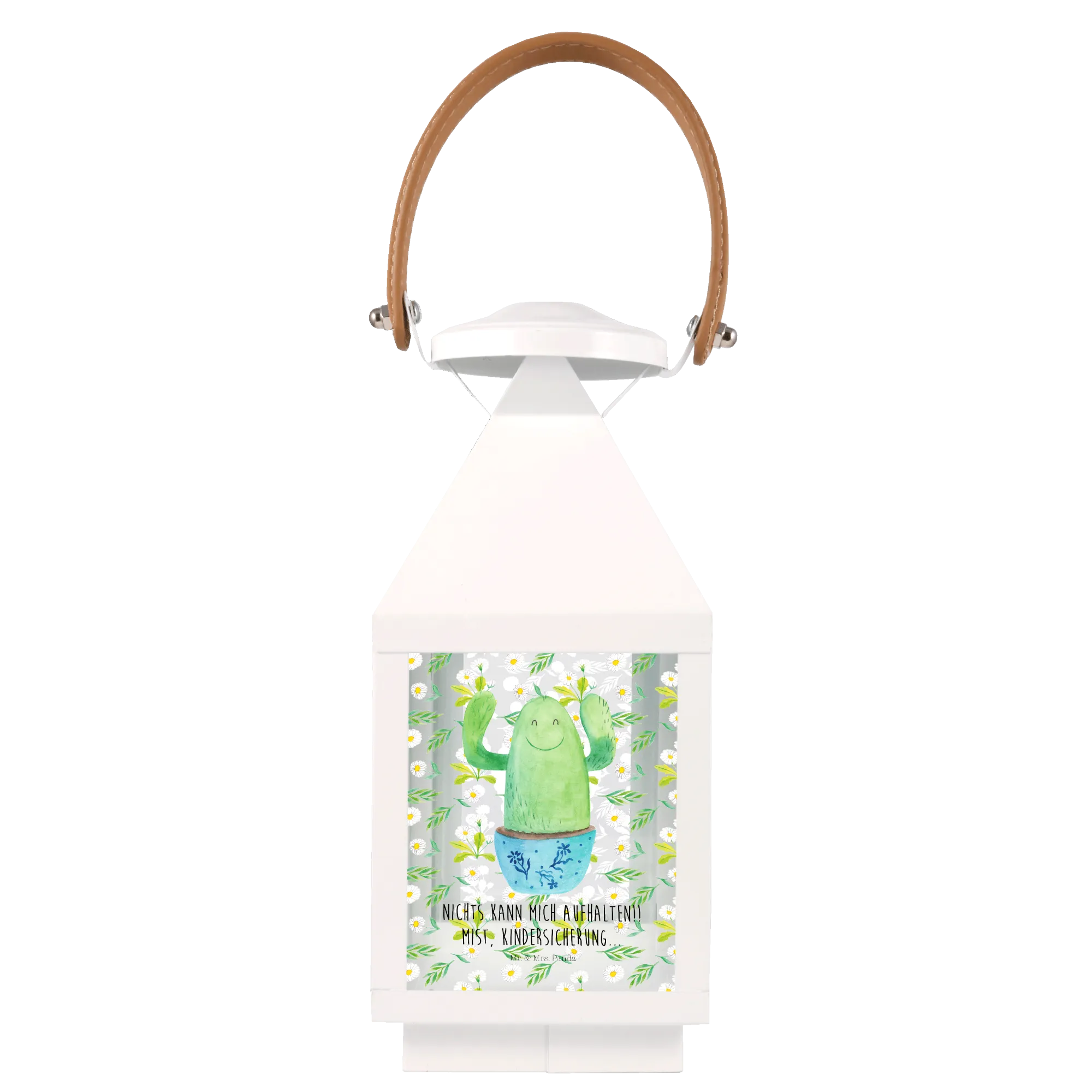 Dank ihrer liebevollen Gestaltung mit dem Aufdruck eines fröhlichen Kaktus und der Botschaft "Nichts kann mich aufhalten!! Mist, Kindersicherung..." weckt sie Lebensfreude und Motivation. Die Laterne hat eine praktische Tür, durch die du Kerzen oder Lichterketten einsetzen kannst, um eine noch gemütlichere Atmosphäre zu schaffen.