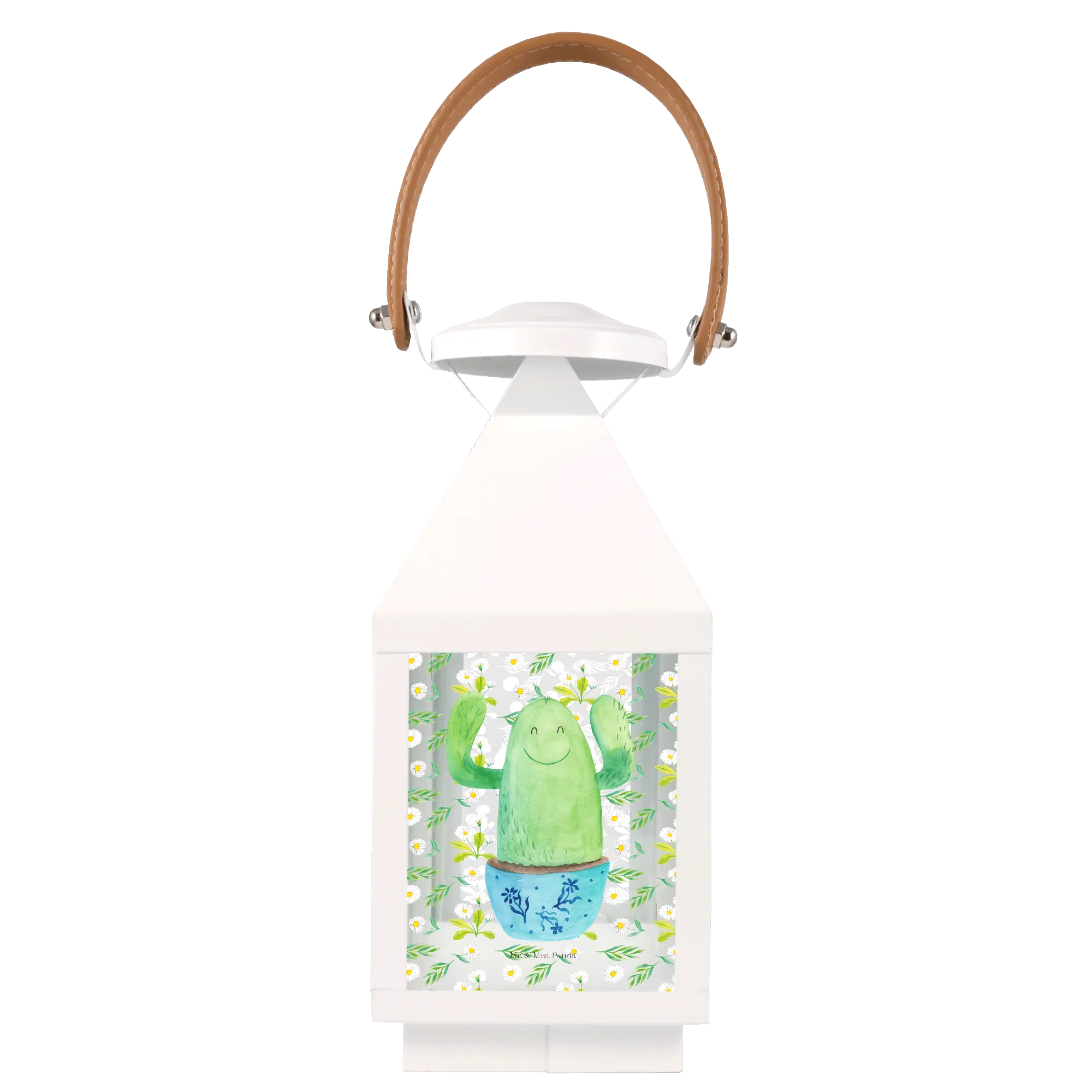 Das Design zeigt einen fröhlichen Kaktus in einem hübschen blauen Blumenkopf, liebevoll von Mrs. Panda im Aquarell-Stil handgezeichnet. Jedes Detail vermittelt Lebensfreude und sorgt dafür, dass die Laterne ein einladendes Ambiente schafft.