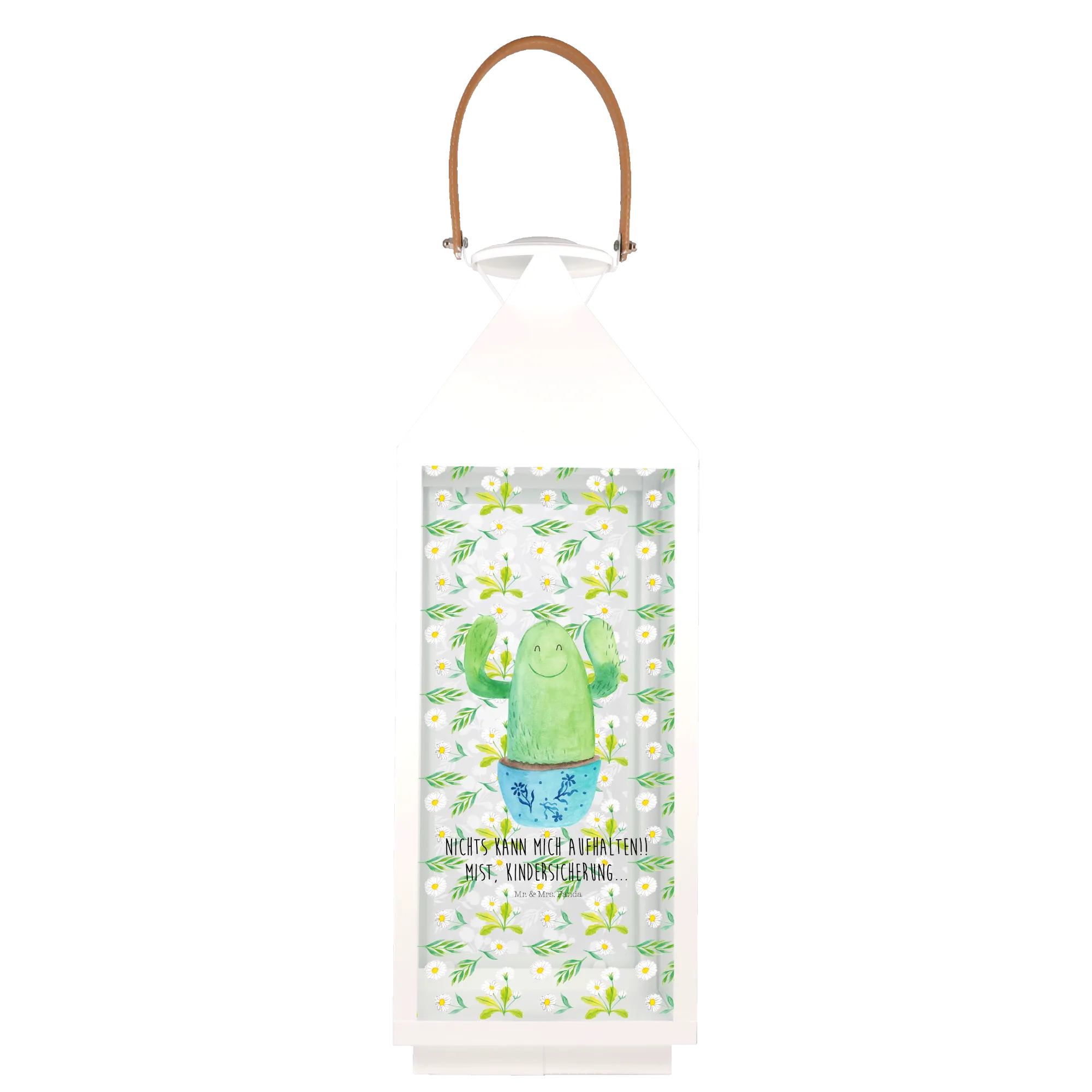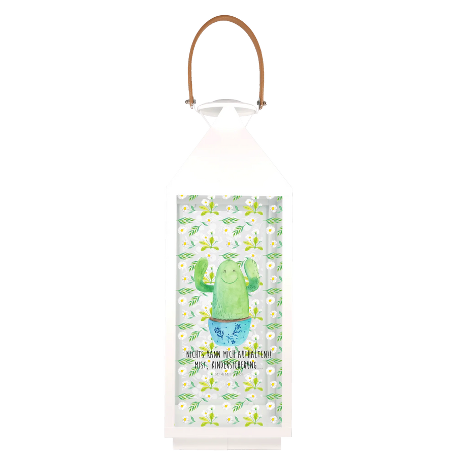 Die Deko Laterne Kaktus Happy von Mr. & Mrs. Panda ist nicht nur ein echter Hingucker, sondern auch das perfekte Geschenk für alle, die das Besondere lieben! Mit ihrem fröhlichen Kaktus-Motiv und dem Slogan "Nichts kann mich aufhalten!! Mist, Kindersicherung..." zaubert diese Laterne jedem ein Lächeln ins Gesicht.