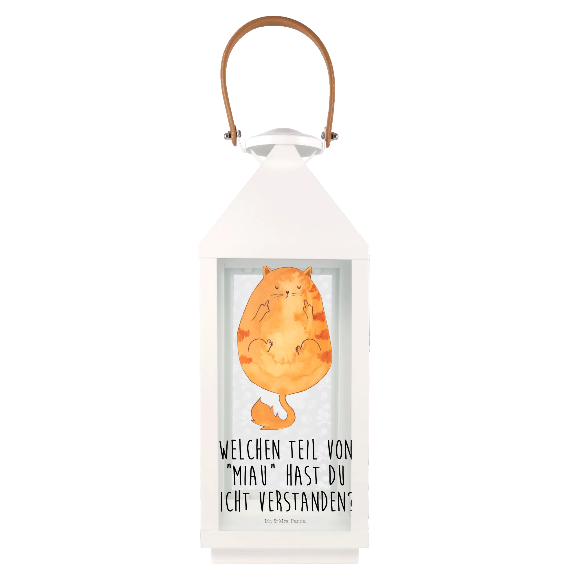 Entdecke unsere wunderschöne Deko Laterne mit dem einzigartigen Motiv 'Katze Mittelfinger' aus der Katzen-Kollektion von Mr. & Mrs. Panda!