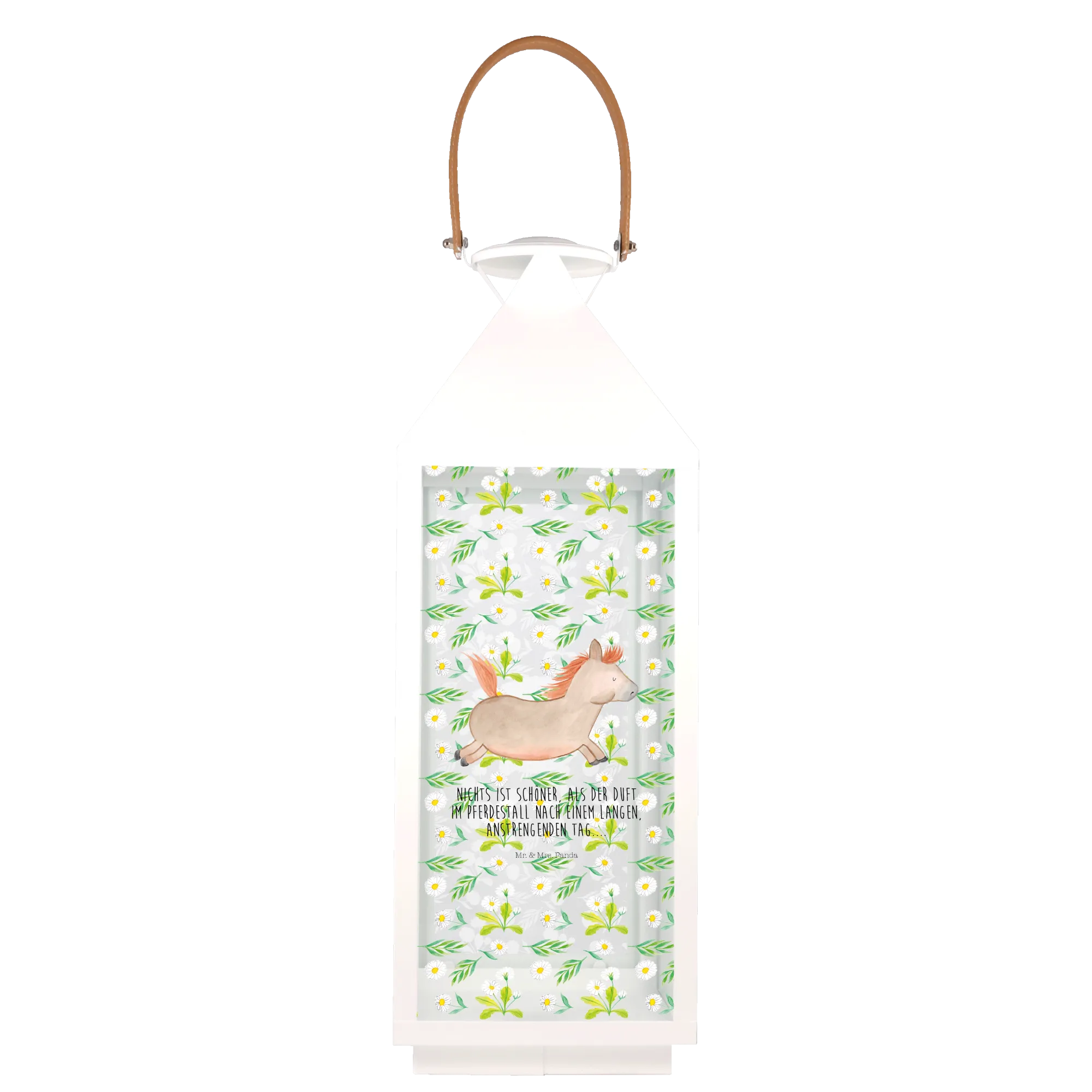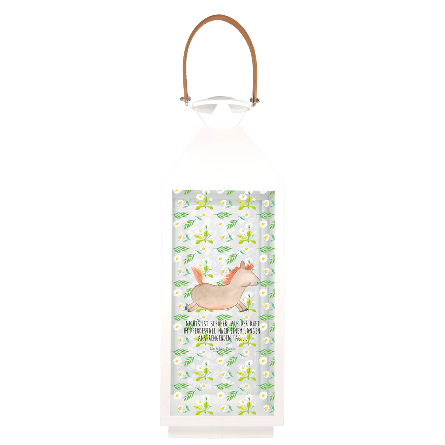 Die Deko Laterne mit dem süßen Motiv "Pferd springt" aus der bezaubernden Bauernhof-Kollektion von Mr. & Mrs. Panda ist das perfekte Geschenk für alle Pferdeliebhaber und Pferdebesitzer.
