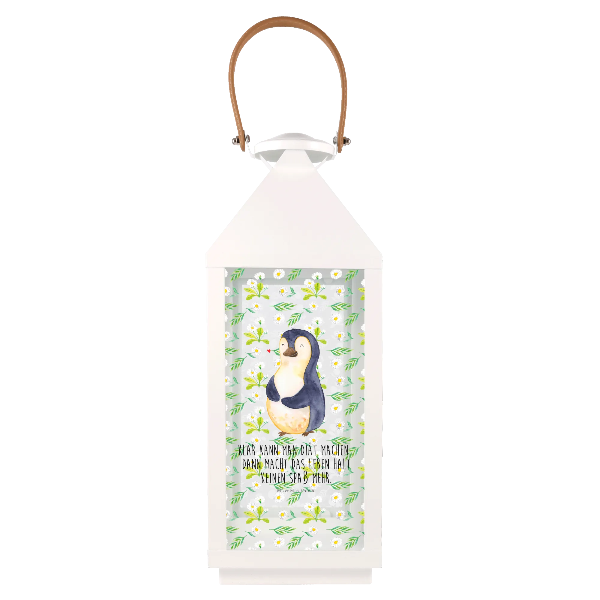 Die Deko Laterne mit dem wunderschönen Pinguin Motiv „Diät“ von Mr. & Mrs. Panda ist das perfekte Geschenk für all diejenigen, die Humor und eine liebevolle Note in ihrer Gartendekoration schätzen.