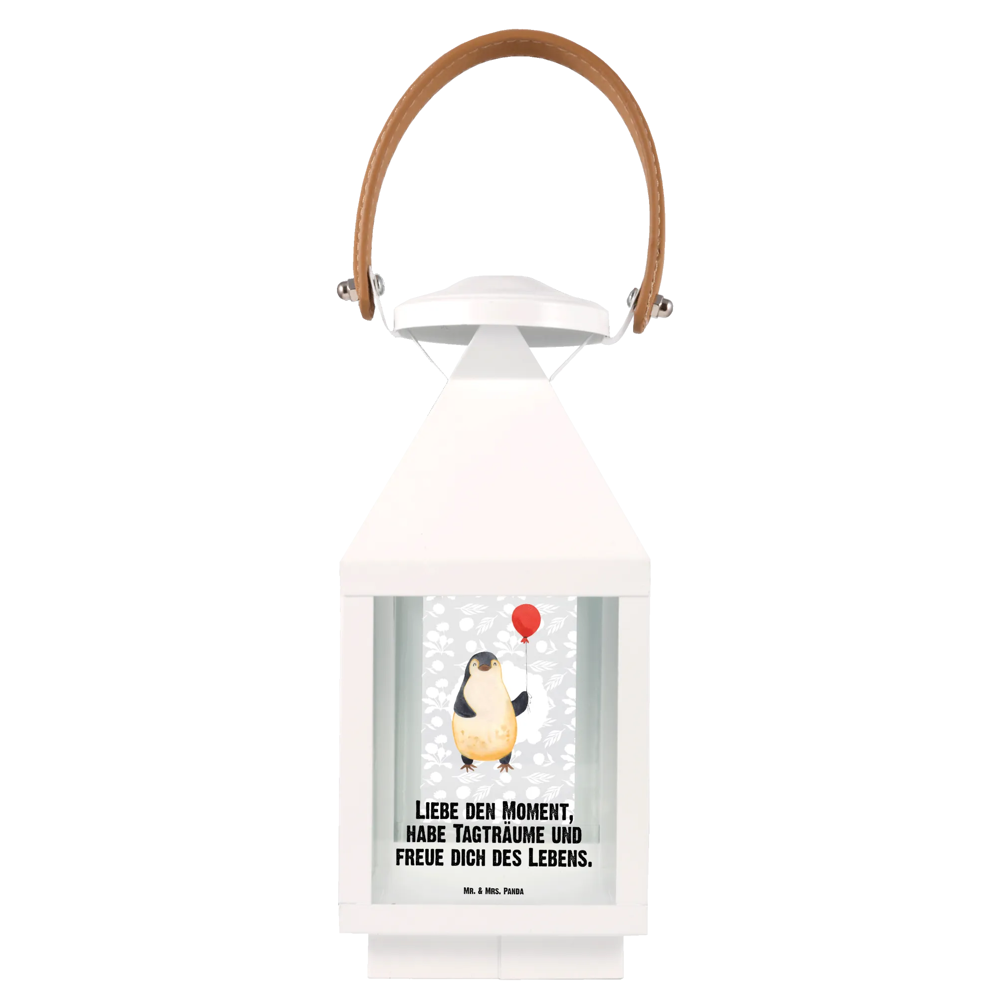 Die Deko Laterne Pinguin Luftballon von Mr. & Mrs. Panda ist das perfekte Accessoire für deinen Garten, Balkon oder die Terrasse! Mit ihrem verspielten Design, das einen süßen Pinguin zeigt, der einen Luftballon trägt, zaubert sie ein Lächeln auf jedes Gesicht und bringt Lebensfreude in dein Zuhause.