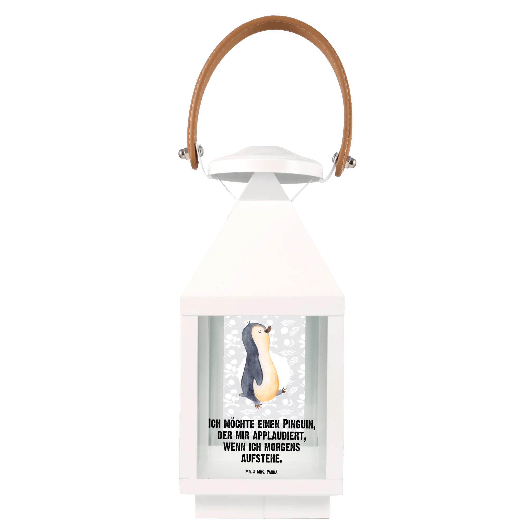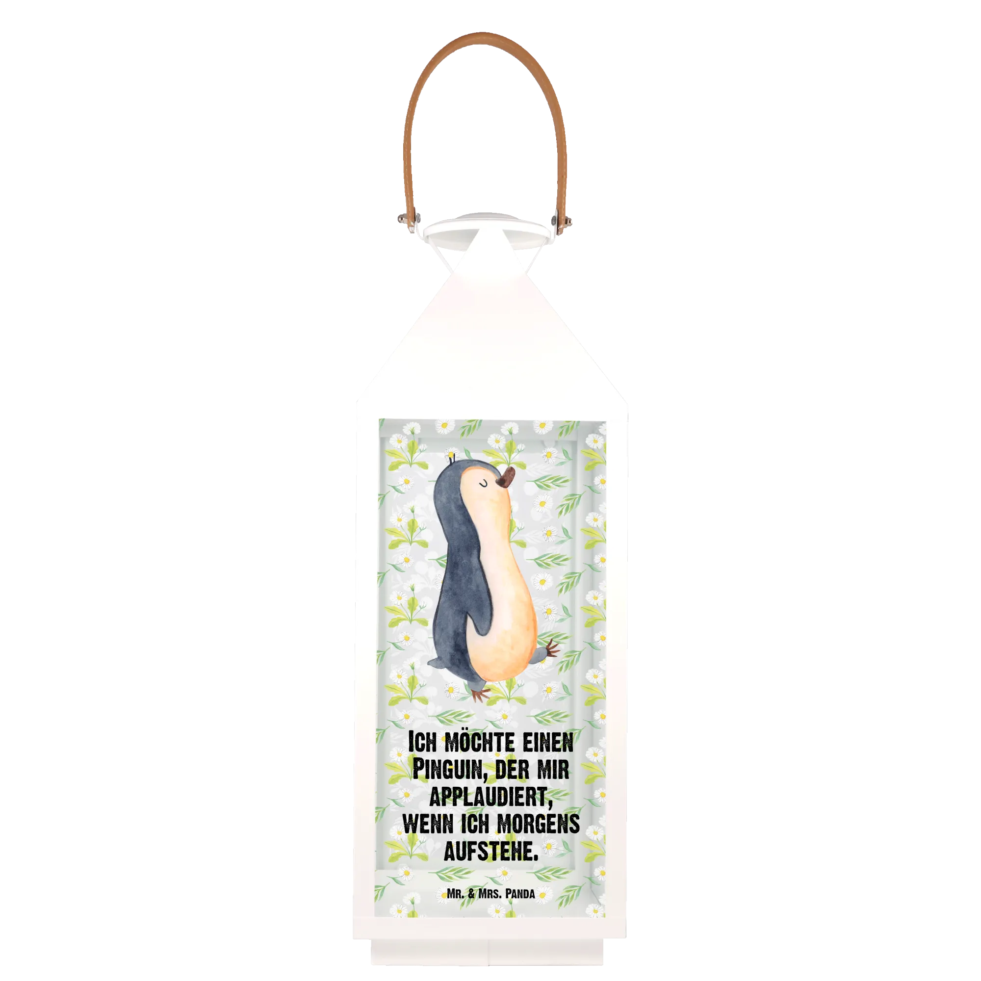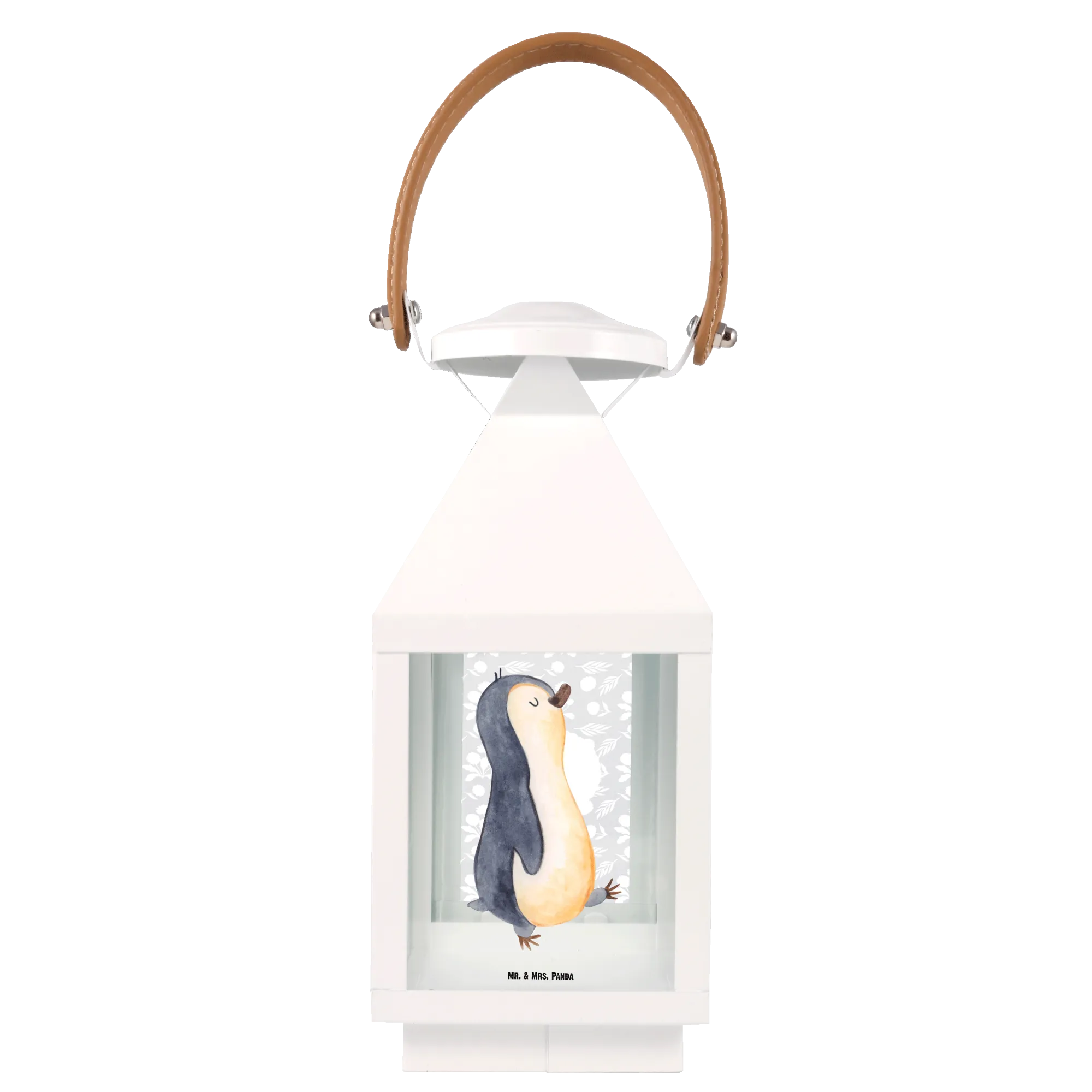 Die Deko Laterne "Pinguin marschierend" aus der bezaubernden Pinguin-Kollektion von Mr. & Mrs. Panda ist das perfekte Geschenk für alle, die ihren Garten, ihre Terrasse oder ihren Balkon mit einem Hauch von Charme und Gemütlichkeit verschönern möchten.