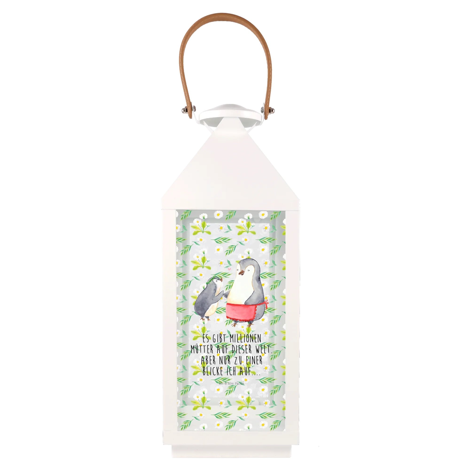 Jedes Detail wurde liebevoll von Mrs. Panda in Aquarell handgezeichnet und auf Premium Metall gedruckt, damit ihr lange Freude an diesem liebevollen Geschenk habt. Die Deko Laterne 'Pinguin mit Kind' ist ein Teil der Familienkollektion von Mr. & Mrs. Panda, die sich durch Motive und Sprüche auszeichnet, die die besondere Bindung innerhalb einer Familie feiern.