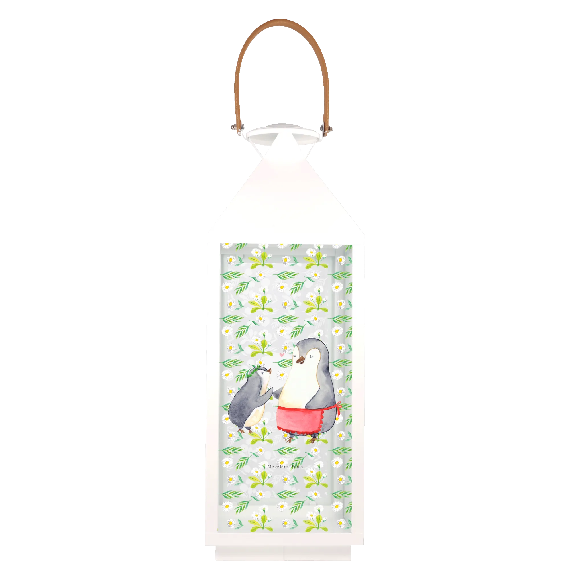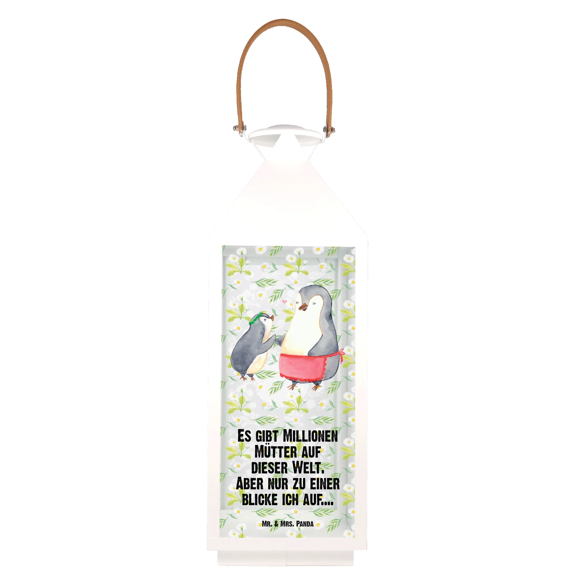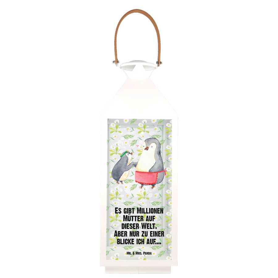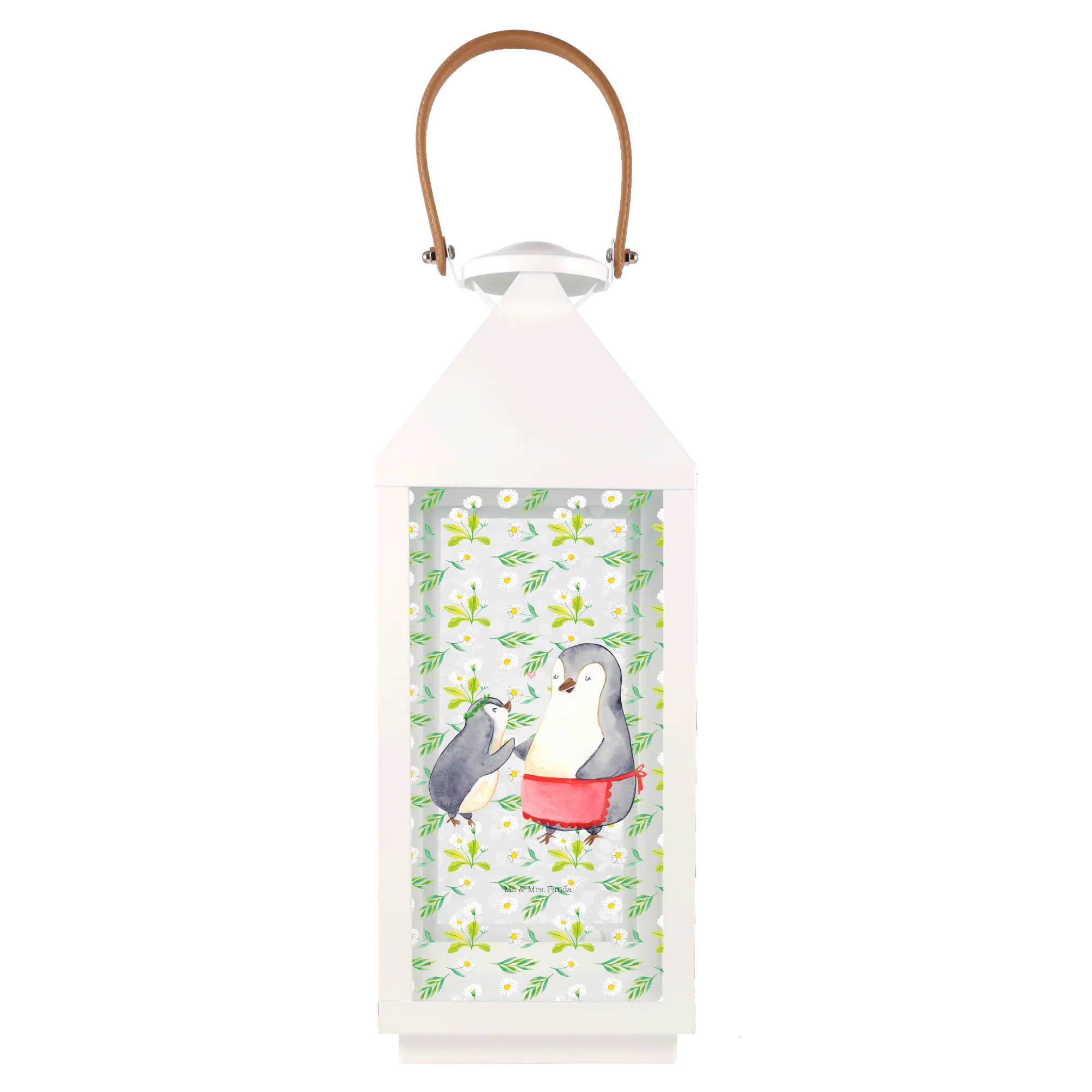 Die wunderschöne Deko Laterne mit dem zauberhaften Motiv des Pinguins mit Kind von Mr. & Mrs. Panda ist das perfekte Geschenk für alle Mütter, die du lieben und schätzen möchtest. Ob zum Geburtstag, Muttertag oder einfach nur um zu sagen "Ich denke an dich!" - diese Laterne bringt das Herz jeder Mama zum Strahlen. Sie zeigt eine liebevolle Szene zweier Pinguine: der große Pinguin in einer roten Schürze und das kleine, süße Kind mit einem hübschen grünen Kranz auf dem Kopf. Ihr zärtlicher Blick vermittelt eine starke emotionale Verbindung, unterstrichen von einem schwebenden Herz zwischen ihnen.