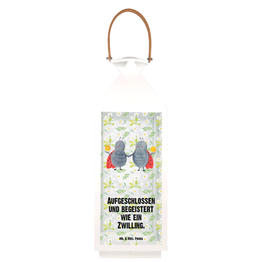 Entdecke die wunderschöne Deko Laterne mit dem Motiv Sternzeichen Zwilling von Mr. & Mrs. Panda – ein echtes Highlight für jeden Garten oder Balkon!