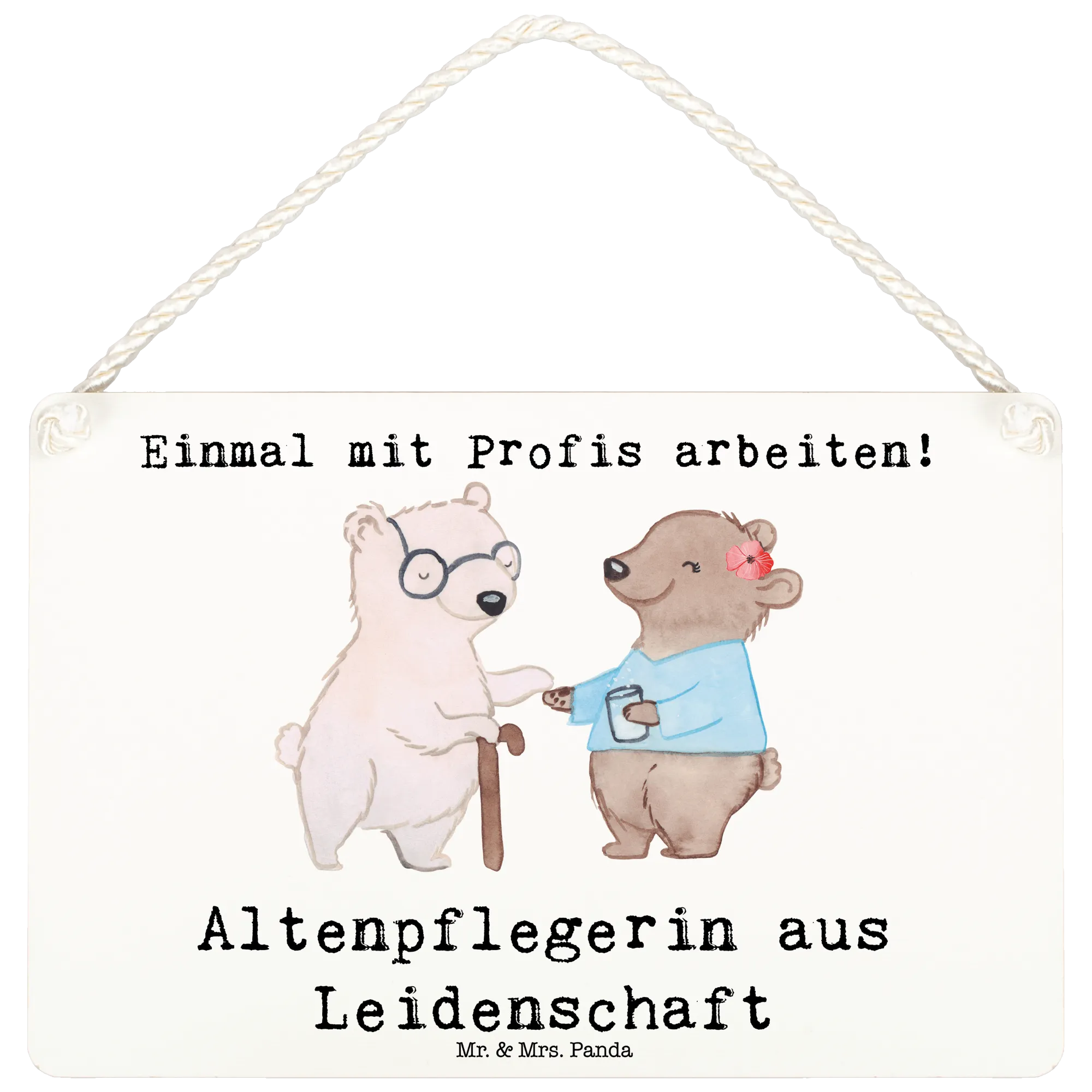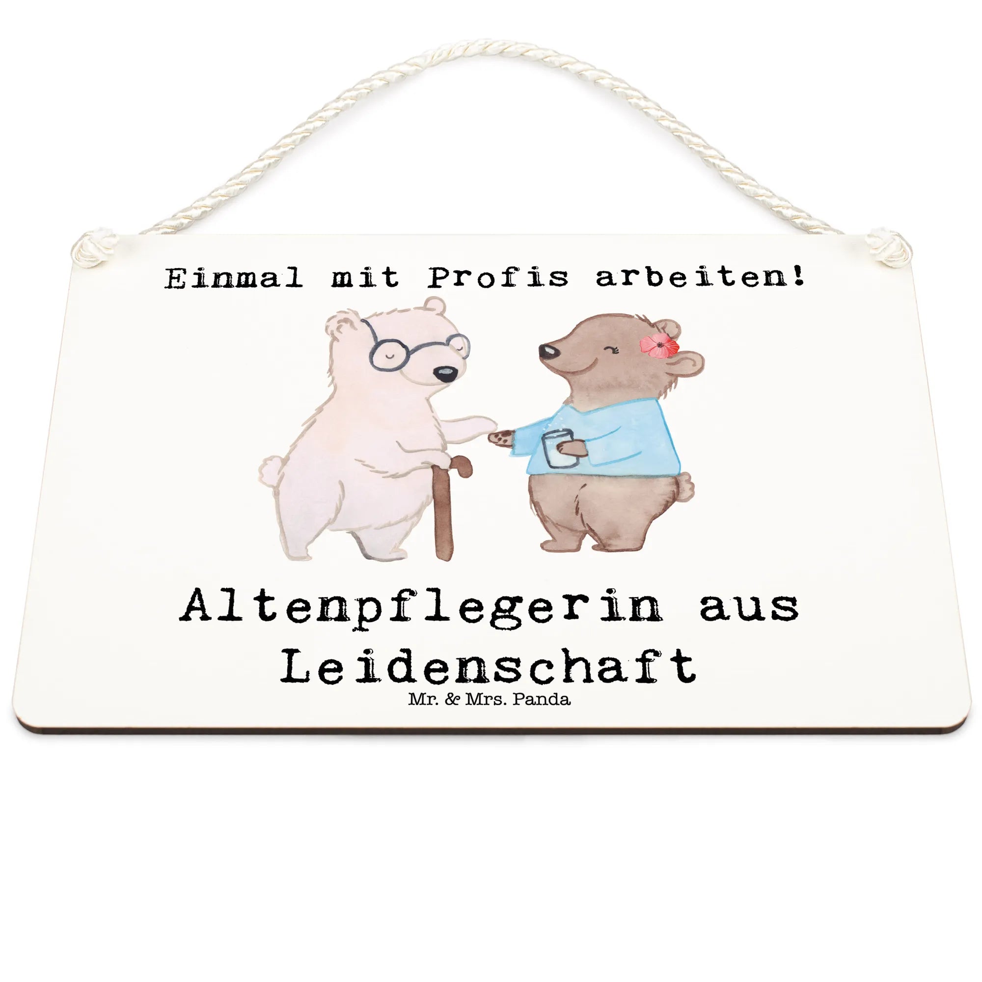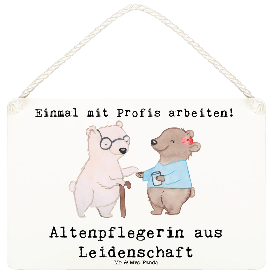 Das Deko Schild "Altenpflegerin aus Leidenschaft" von Mr. & Mrs. Panda ist ein ganz besonderes Geschenk für alle, die im Bereich Altenpflege arbeiten. Es strahlt nicht nur Professionalität aus, sondern drückt auch viel Herz aus. Mit einem liebevoll handgezeichneten Motiv, das eine Altenpflegerin zeigt, die einem älteren Menschen zur Seite steht, geht es darum, die unbezahlbare Arbeit dieser herzlichen Personen zu würdigen.