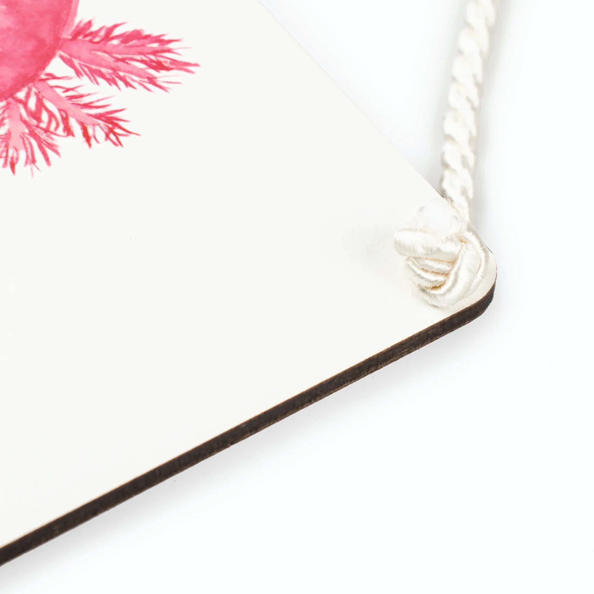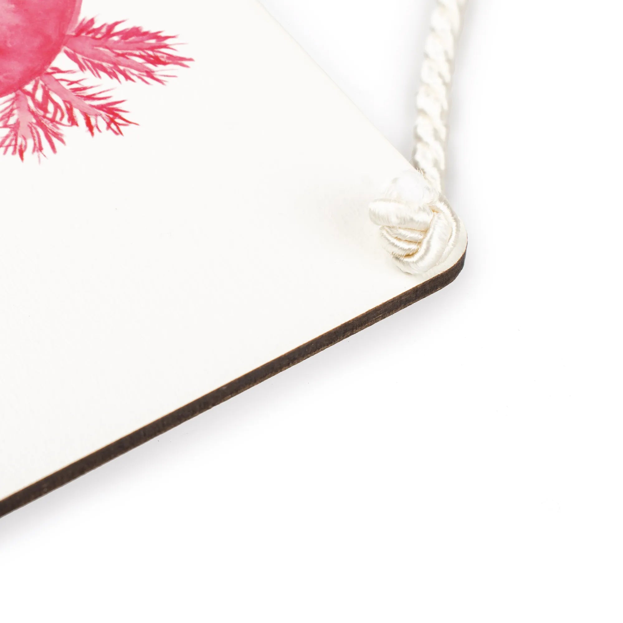 Das Deko Schild misst DIN A5 und besteht aus hochwertiger, beschichteter Holzfaser. Es ist robust und langlebig – ideal, um die Freude an deinen Wänden oder Türen für Jahre zu bewahren. Mit seiner besonderen Aufhängung durch die wunderschön gedrehte Kordel kannst du das Schild ganz leicht aufhängen und überall zum Strahlen bringen.