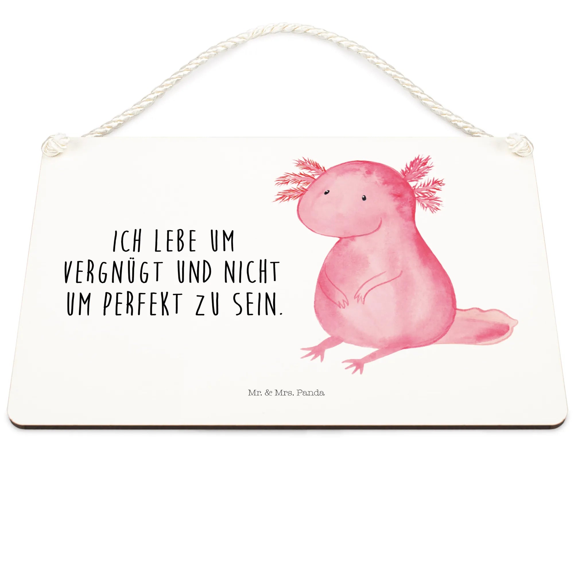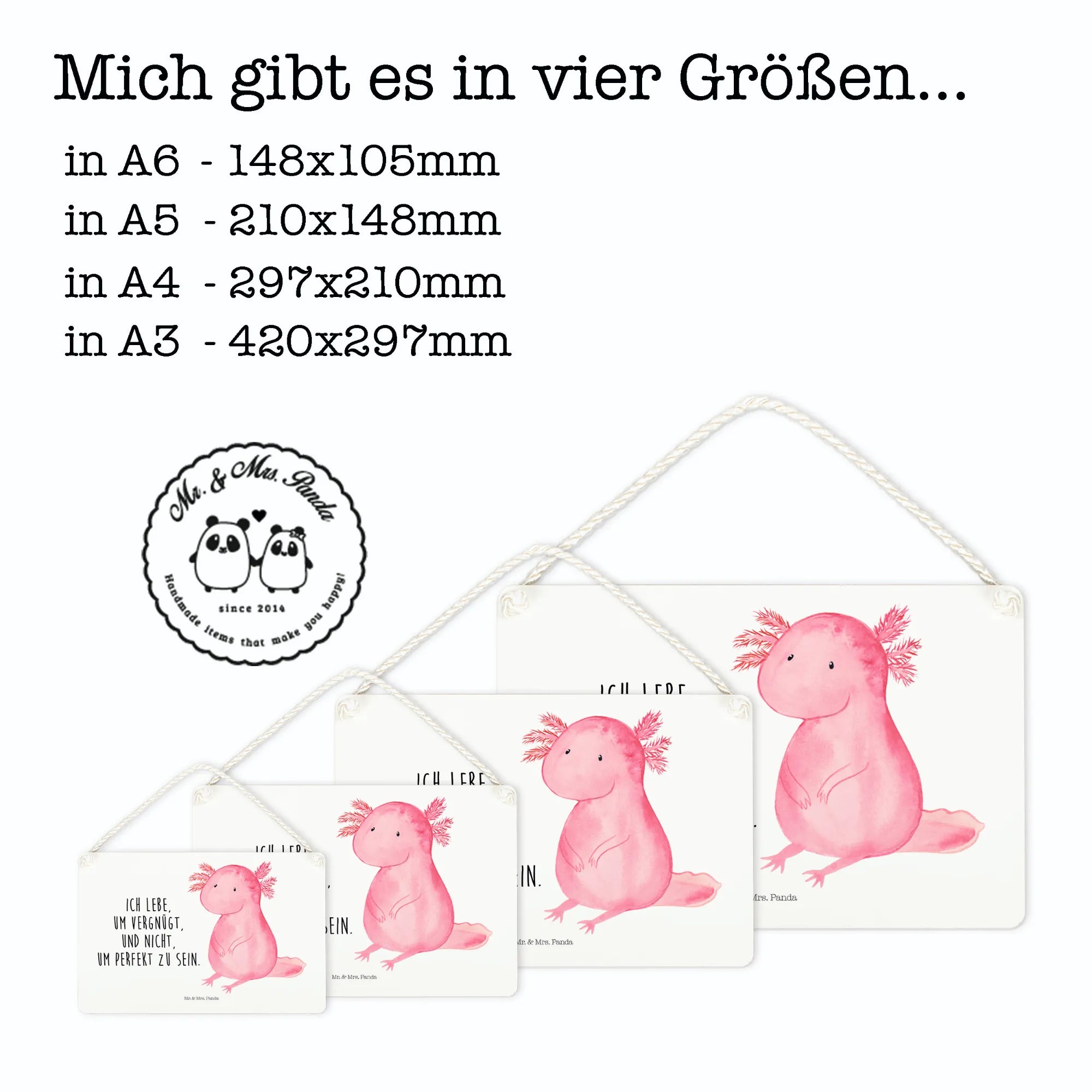 Entdecke das wunderschöne Deko Schild "Ich lebe um vergnügt, und nicht um perfekt zu sein" aus der Axolotl Kollektion von Mr. & Mrs. Panda! Dieses einzigartige Schild aus beschichteter Holzfaser wird dich mit seinem liebevollen Design und fröhlichen Spruch begeistern. Der süße Axolotl, handgezeichnet von Mrs. Panda, strahlt Lebensfreude und Zufriedenheit aus und bringt einen Hauch von guter Laune in jedes Zuhause.