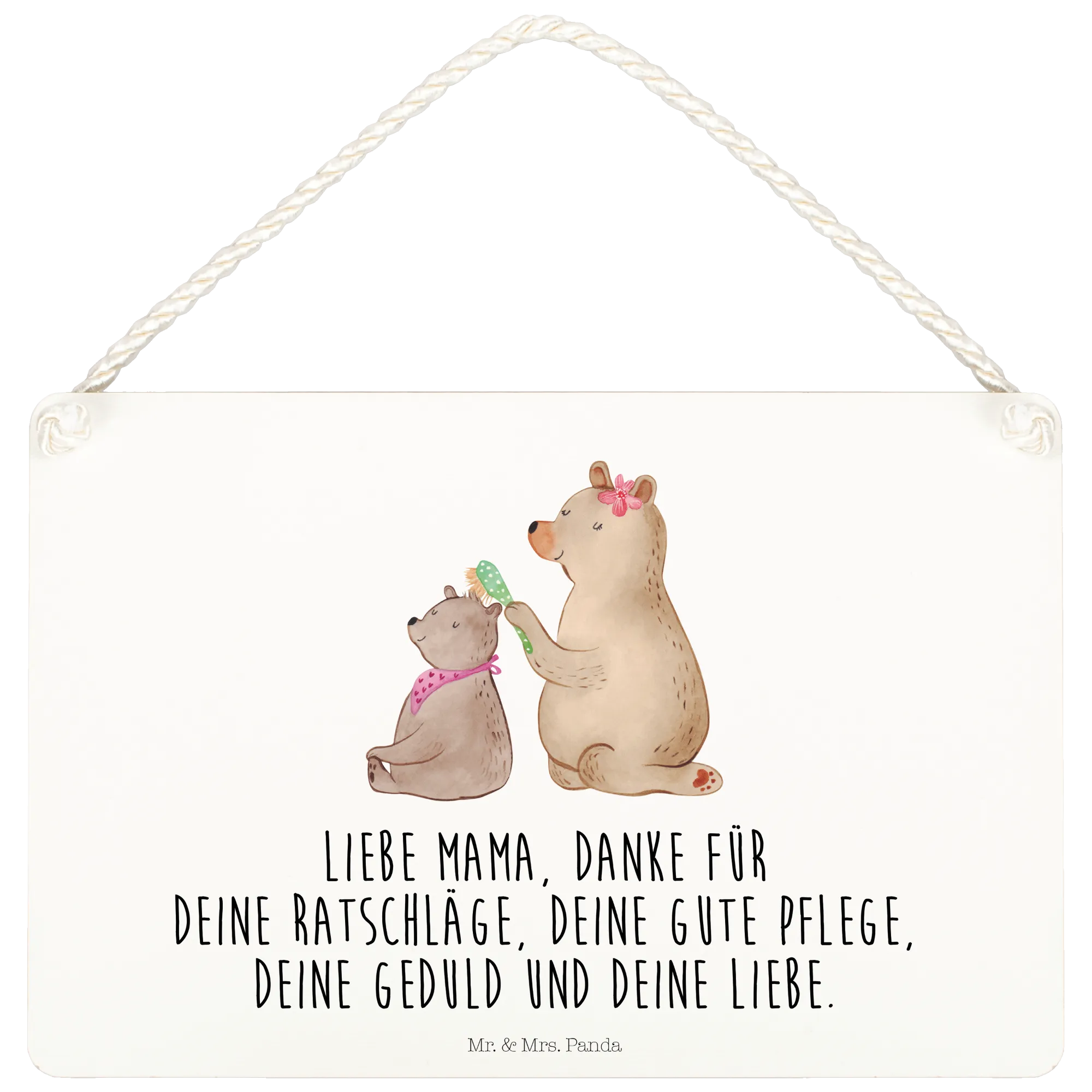 Das Schild bringt Wärme und eine herzliche Atmosphäre in jedes Zuhause und ist ideal als Wanddeko oder Türschild. Das bezaubernde Design zeigt einen großen Bären, der mit einem kleinen Bären kuschelt – eine Darstellung von Zuneigung und familiärer Bindung, die das Herz jeder Mutter höher schlagen lässt.