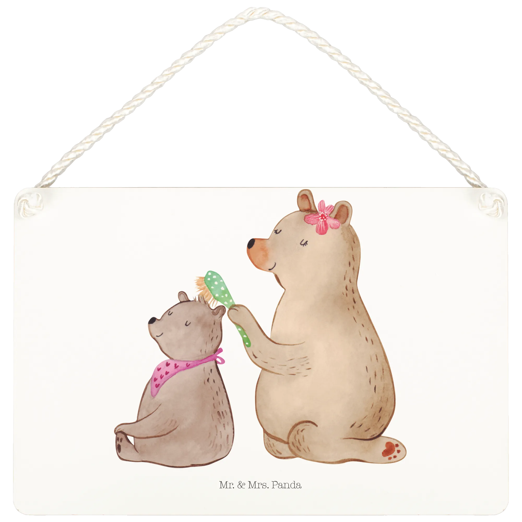 Das wunderschöne Deko Schild "Bär mit Kind" von Mr. & Mrs. Panda ist das perfekte Geschenk für alle Mamas da draußen. Egal ob zum Muttertag, Geburtstag oder einfach nur so, um deiner Mutti zu zeigen, wie wichtig sie dir ist – dieses Schild bringt ein Lächeln auf ihr Gesicht! Das liebevolle Motiv zeigt einen großen Bären mit einer blumengeschmückten Haarspange, der zärtlich das Fell des kleinen Bären bürstet. Beide Tiere strahlen eine harmonische und familiäre Atmosphäre aus, die das Geschenk besonders macht.