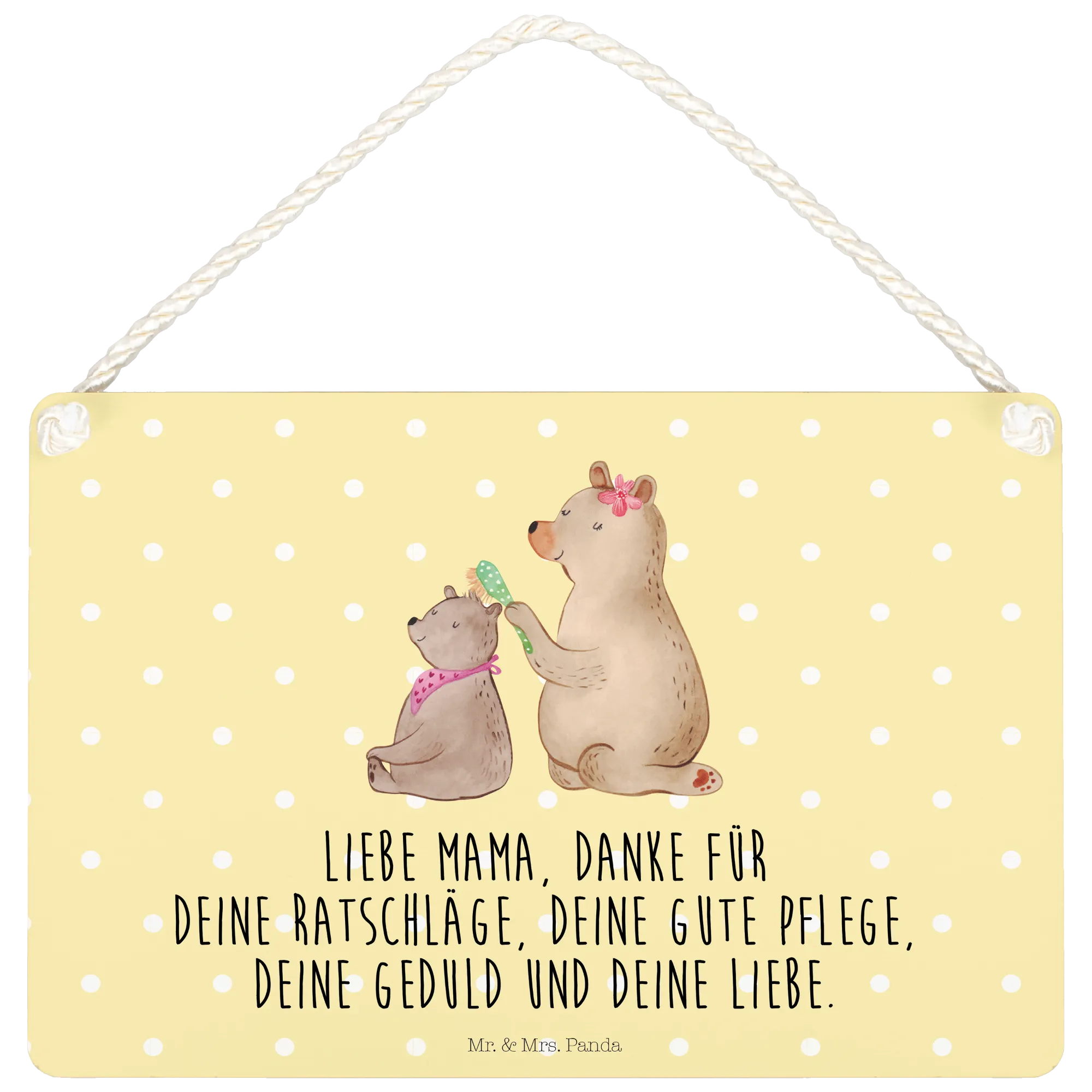 Mit dem zärtlichen Motiv eines großen Bären, der fürsorglich das Haar eines kleinen Bären bürstet, bringt dieses Schild eine familiäre Atmosphäre in jeden Raum. Es ist ideal für jeden Anlass, sei es zum Geburtstag, zum Muttertag oder einfach um deiner Mama zu sagen: 'Du bist mir unheimlich wichtig!'. ❤️