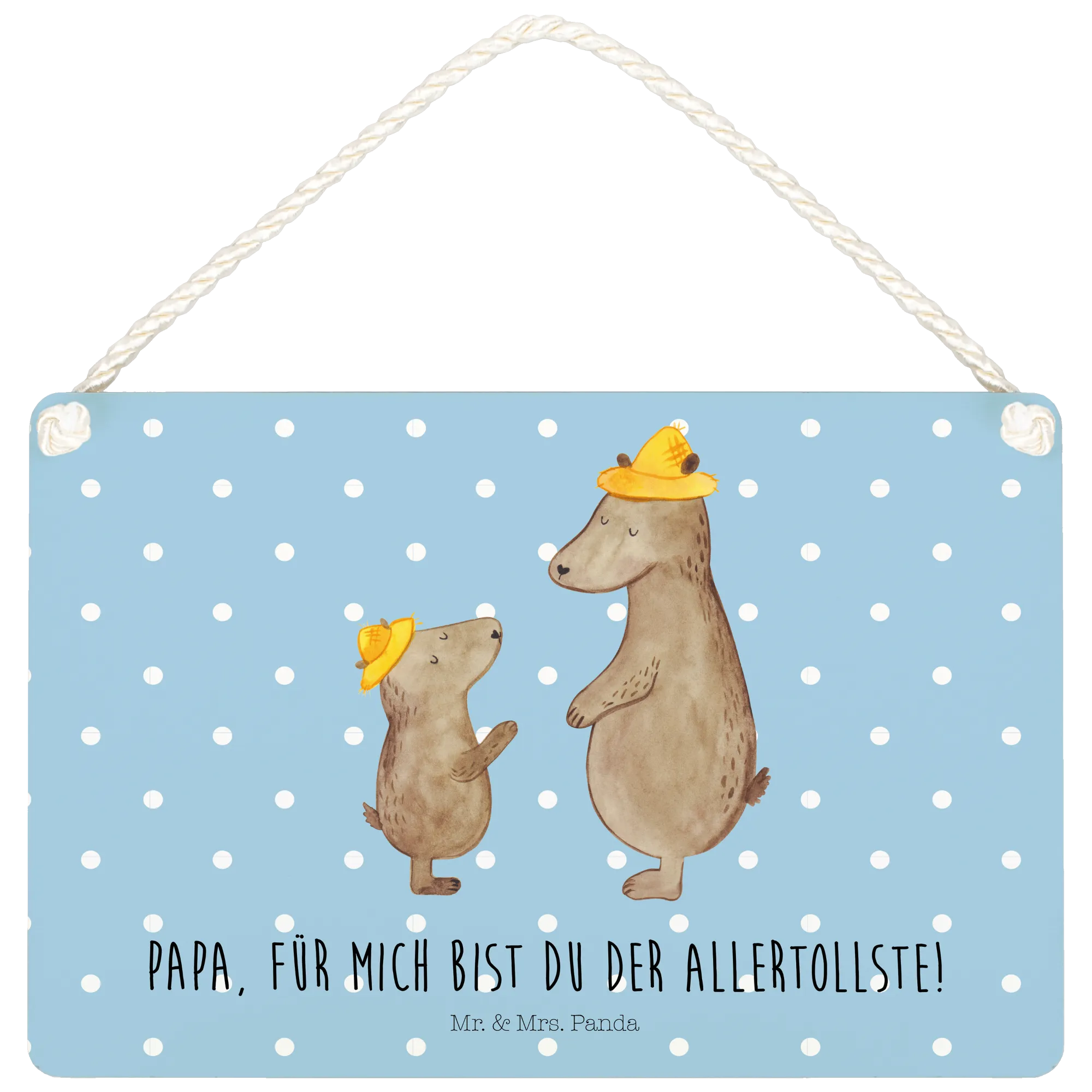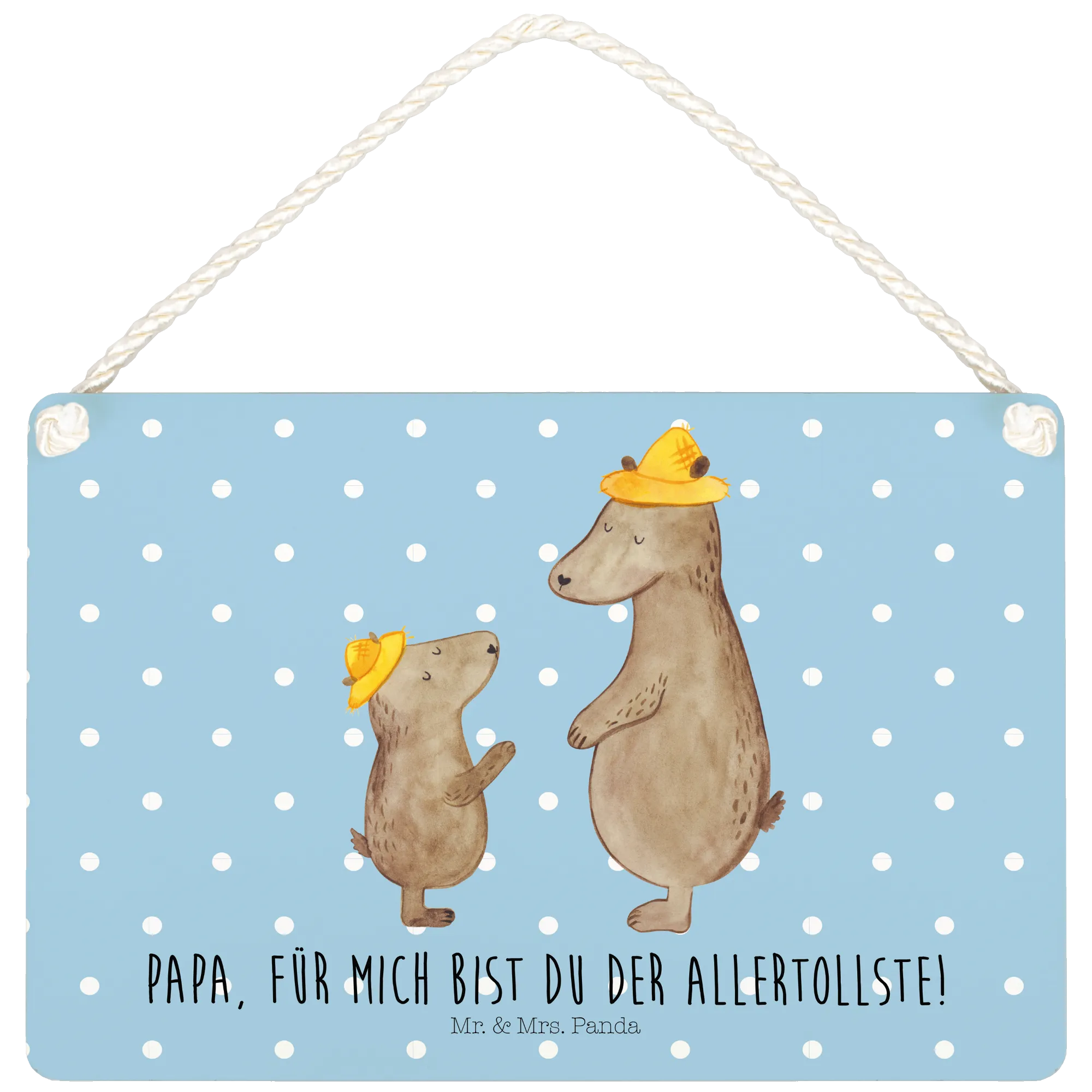 Das Deko Schild "Bären mit Hut" von Mr. & Mrs. Panda ist die perfekte Geschenkidee für jeden lieben Papa oder Lieblingsmenschen in deinem Leben. Mit seinem liebevollen Design und dem süßen Slogan "Papa, für mich bist du der Allertollste!" zaubert es jedem ein Lächeln ins Gesicht.
