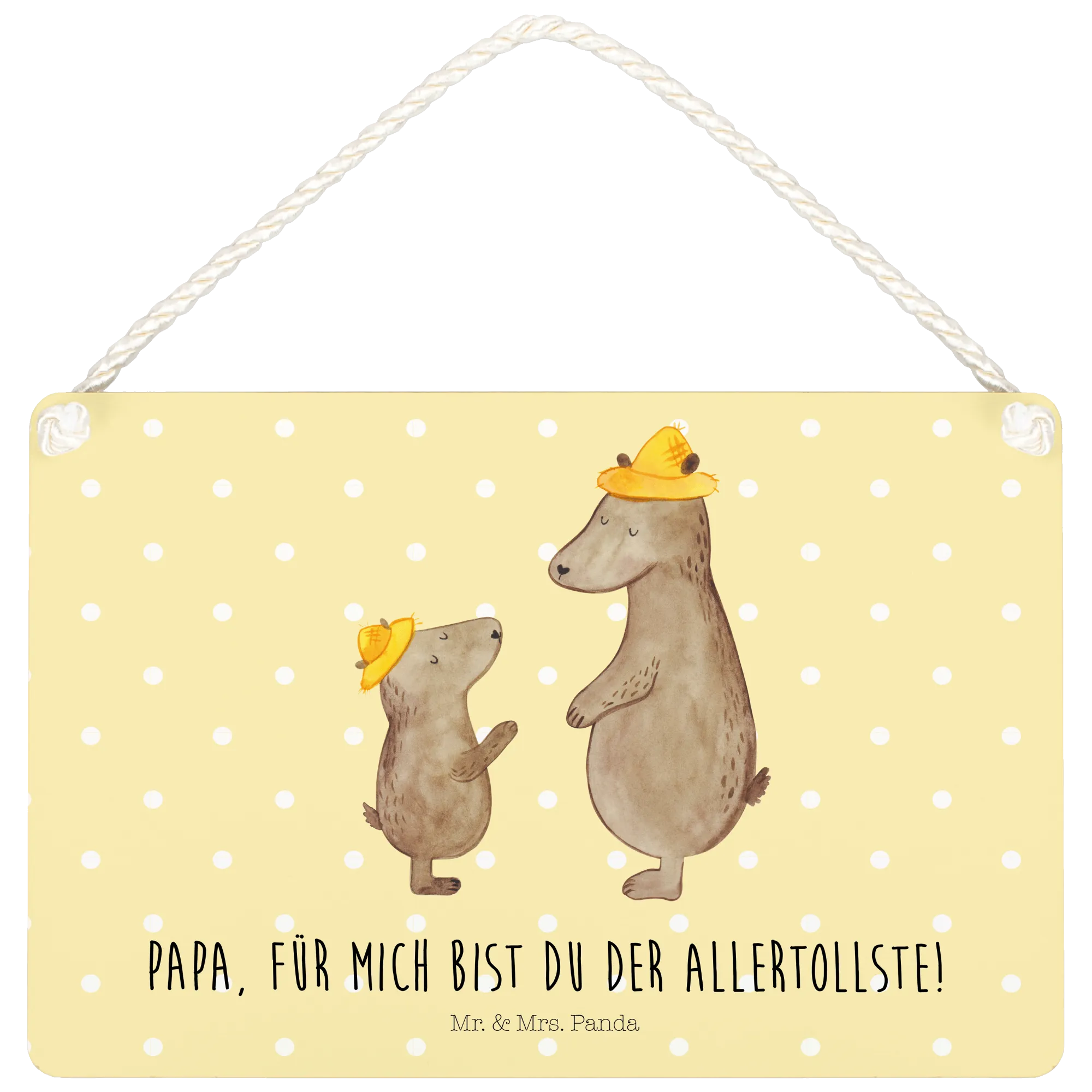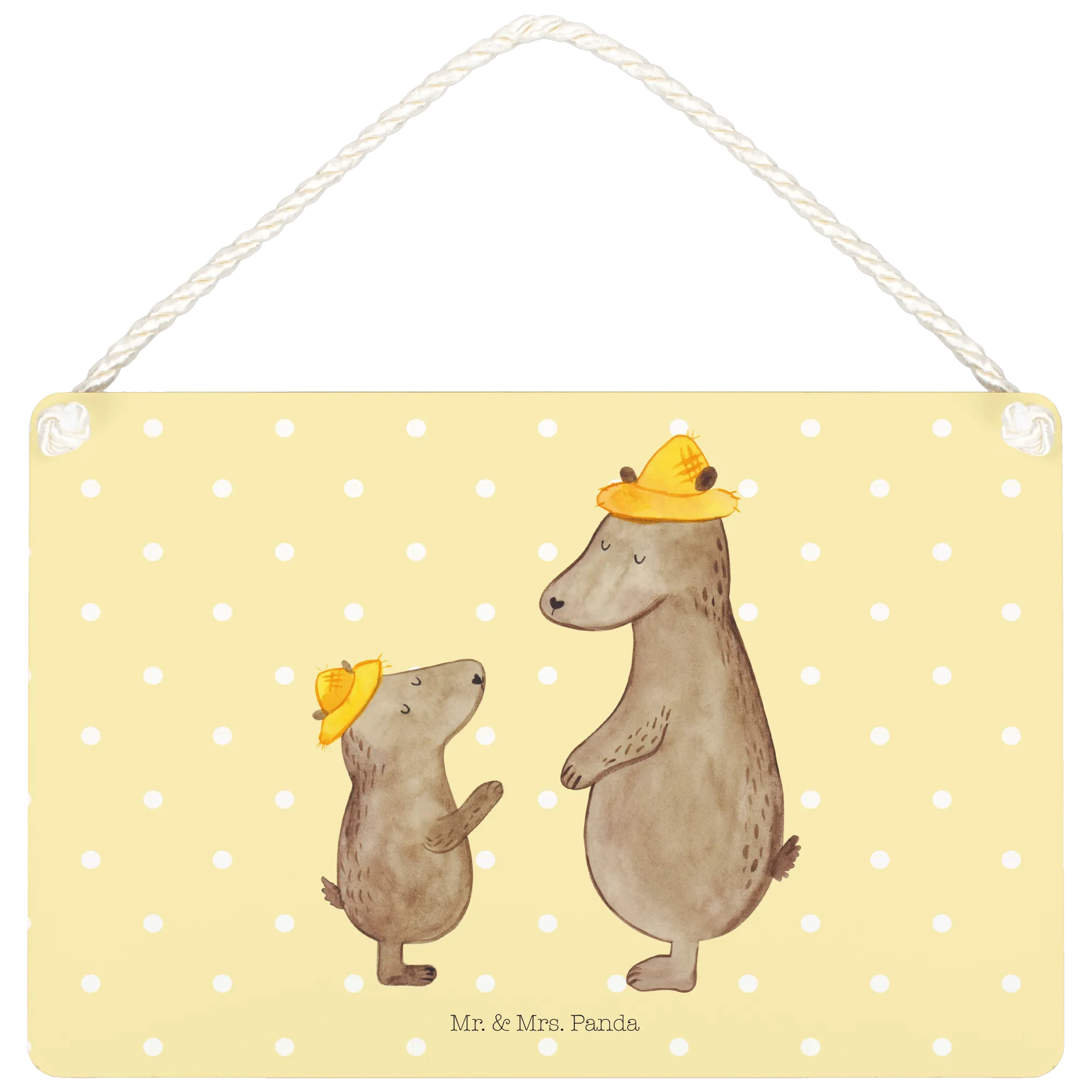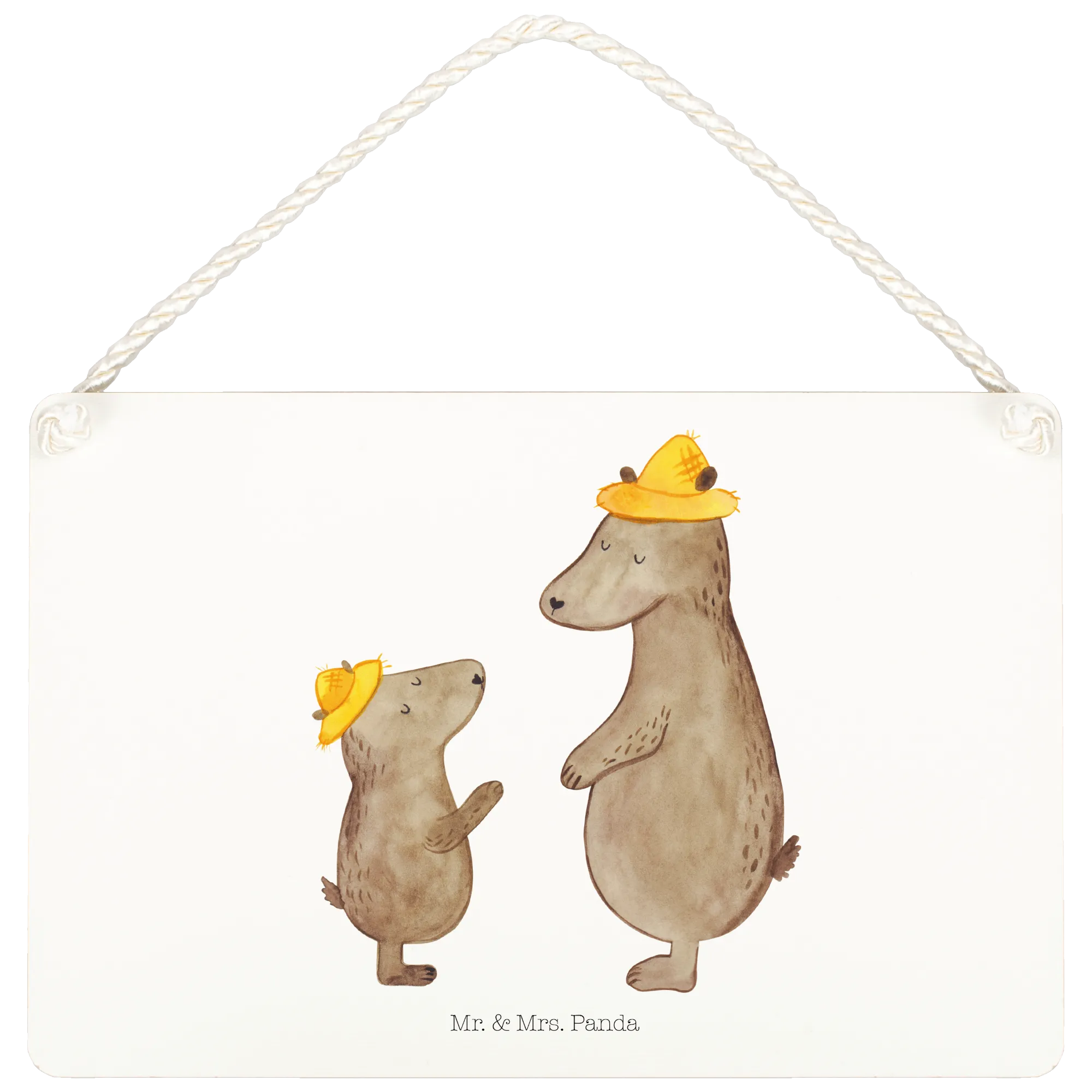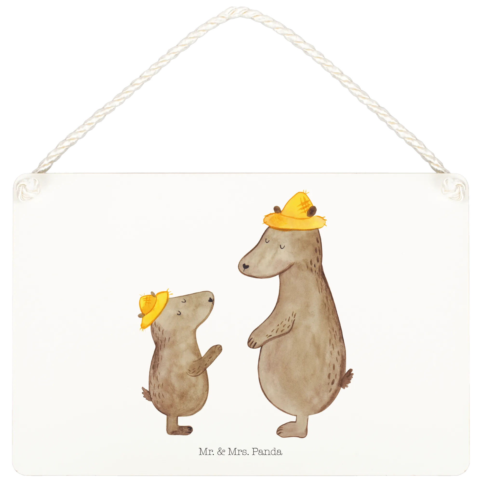 Dieses wunderschöne Deko Schild von Mr. & Mrs. Panda ist das perfekte Geschenk für alle Väter, die ihren Kindern, ihrer Familie oder einfach nur sich selbst eine Freude machen möchten. Das Schild zeigt ein zauberhaftes Motiv von zwei Bären mit Hüten, die eine warme familiäre Beziehung ausstrahlen. Der größere Bär trägt einen stilvollen gelben Hut und steht aufrecht, während der kleinere Bär ihm bewundernd zuschaut. Zusammen vermitteln sie das Gefühl von Liebe und Verbundenheit, das in jeder Familie wichtig ist.