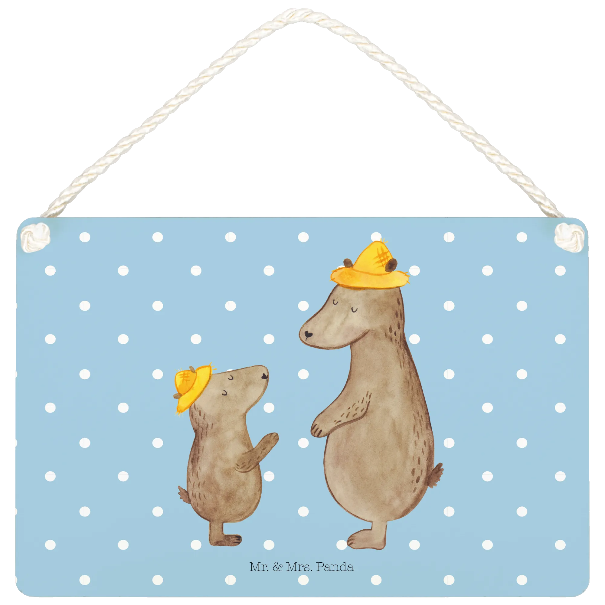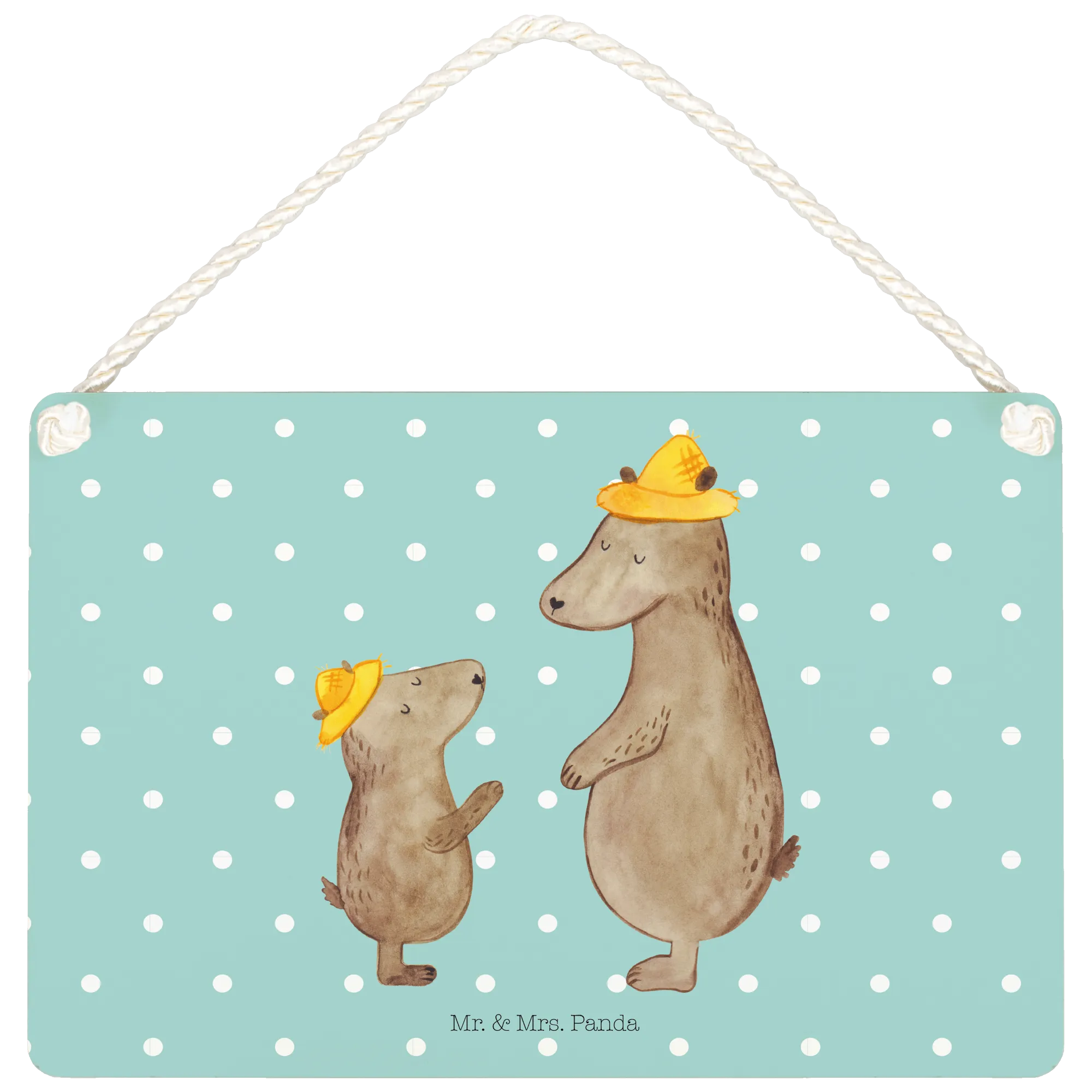 Die beiden Bären charakterisieren nicht nur die Liebe zwischen Vater und Sohn, sondern auch die wunderschöne Beziehung in der Familie. Das Schild hat abmessungen von 297 mm x 210 mm und hat durch die hochwertige Beschichtung eine langlebige Oberfläche, die besonders widerstandsfähig ist. Ein Highlight ist die hübsche Kordel, mit der das Schild ganz einfach überall aufgehängt werden kann.