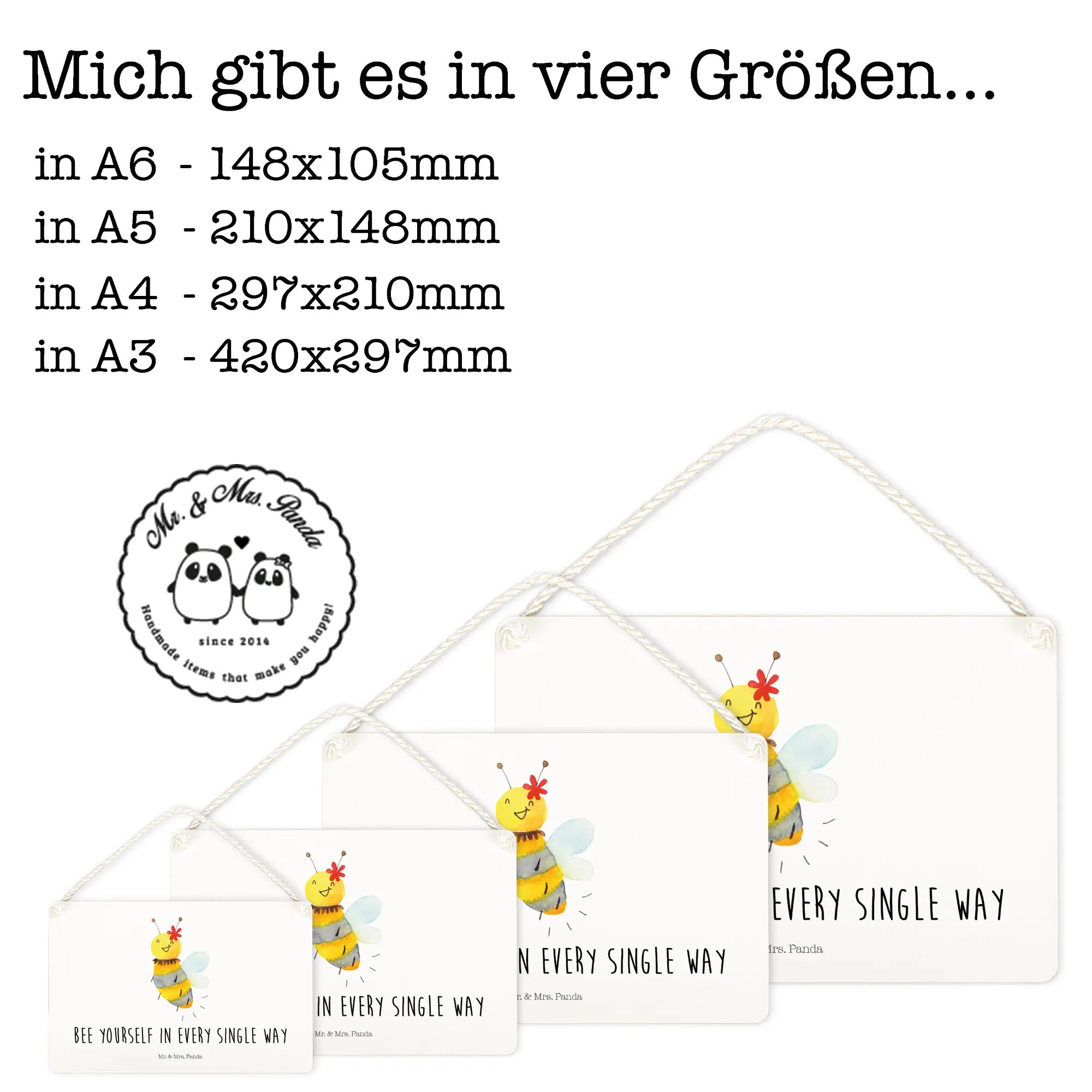 Ein Hauch Sommer für dein Zuhause: Unser Deko Schild „Biene Blume" aus der Bienen Kollektion von Mr. & Mrs. Panda zaubert sofort gute Laune. Die liebevoll in Aquarell gezeichnete Biene mit der zarten Blume auf dem Kopf und der spritzige Spruch "Bee yourself in every single way" machen dieses Dekoschild zu einem fröhlichen Blickfang.