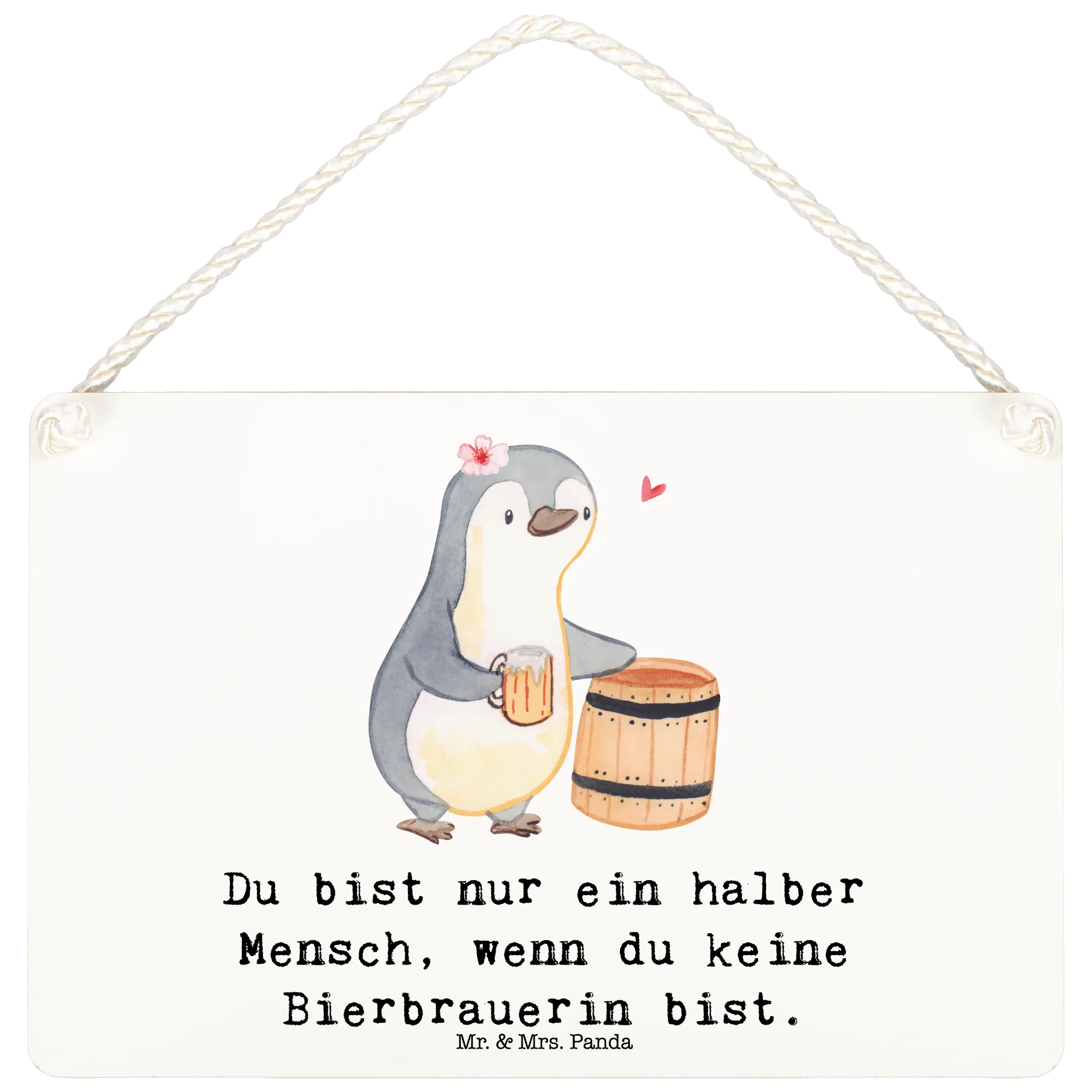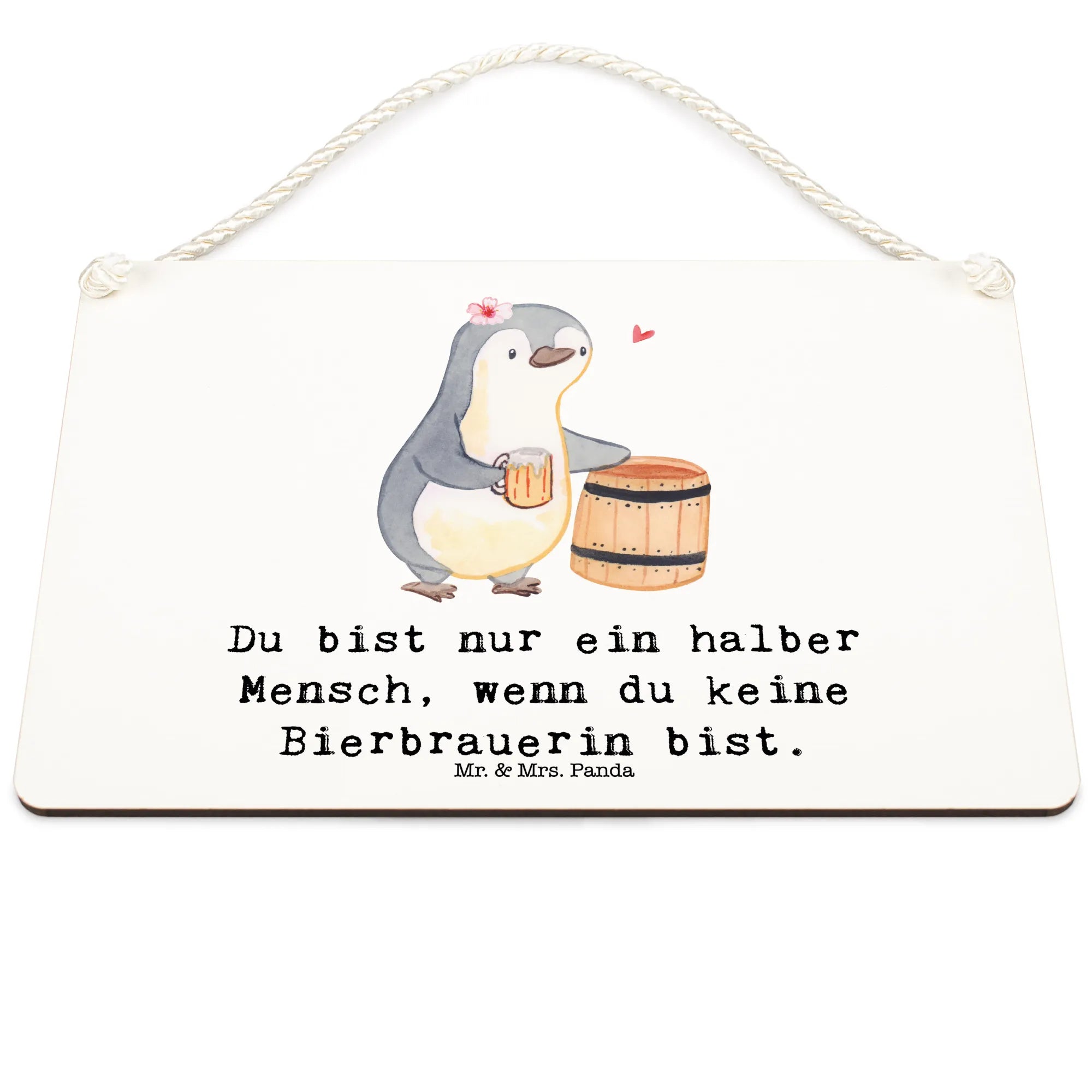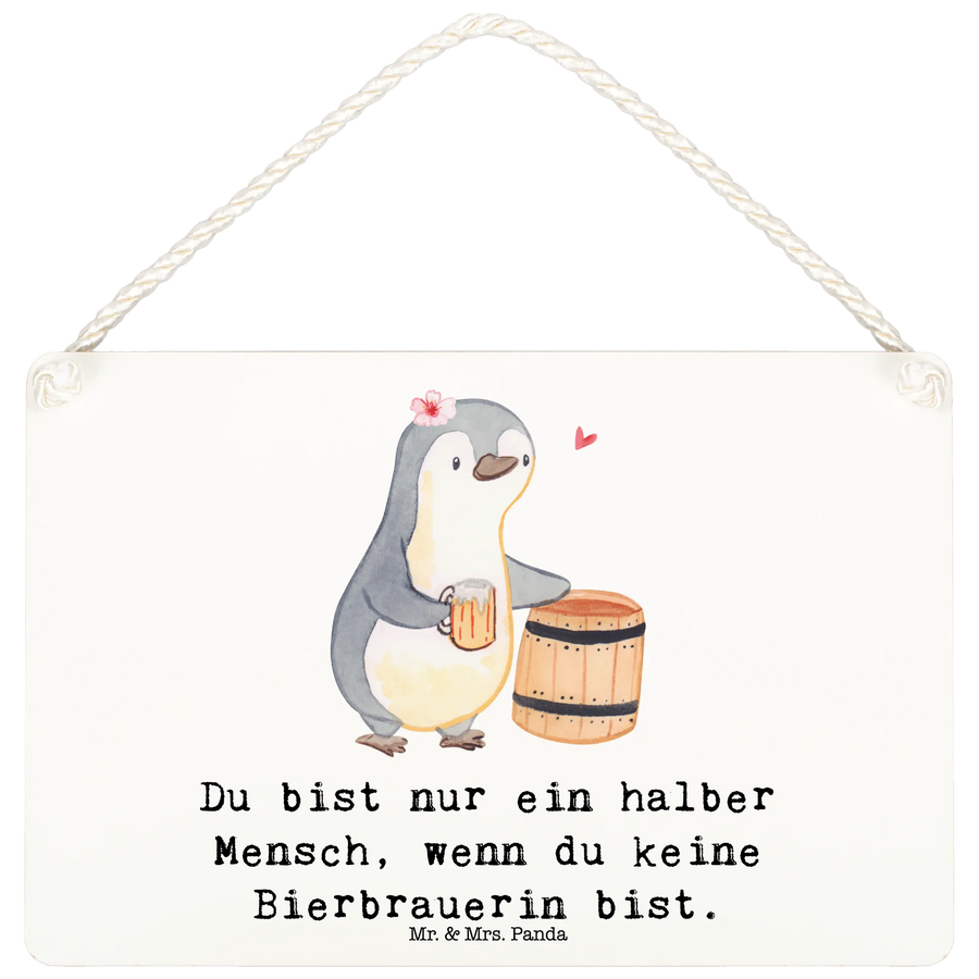 Es zeigt eine süße Pinguindame mit einem vollen Bierglas und dem Spruch: "Du bist nur ein halber Mensch, wenn du keine Bierbrauerin bist." Damit ist das Schild ideal für die, die sich leidenschaftlich mit dem Brauen von Bier beschäftigen oder für die, die einfach nur gerne ein gutes Glas genießen.