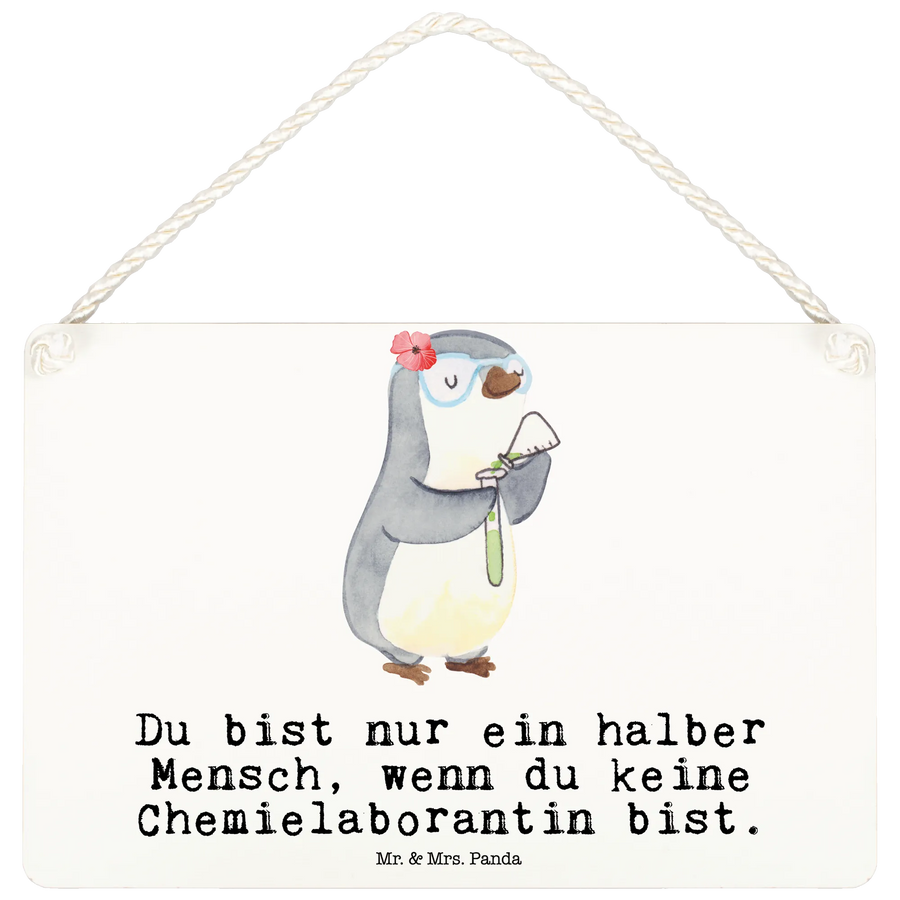 Das Deko Schild "Chemielaborantin mit Herz" von Mr. & Mrs. Panda ist das perfekte Geschenk für alle Chemikerinnen und Chemielaborantinnen, die mit Leidenschaft in der Welt der Wissenschaft arbeiten. Mit einem niedlichen Pinguin, der ein Reagenzglas in der Hand hält und dem Spruch "Du bist nur ein halber Mensch, wenn du keine Chemielaborantin bist" bereichert dieses Holzschild jeden Arbeitsbereich, sei es im Labor, im Büro oder zuhause.