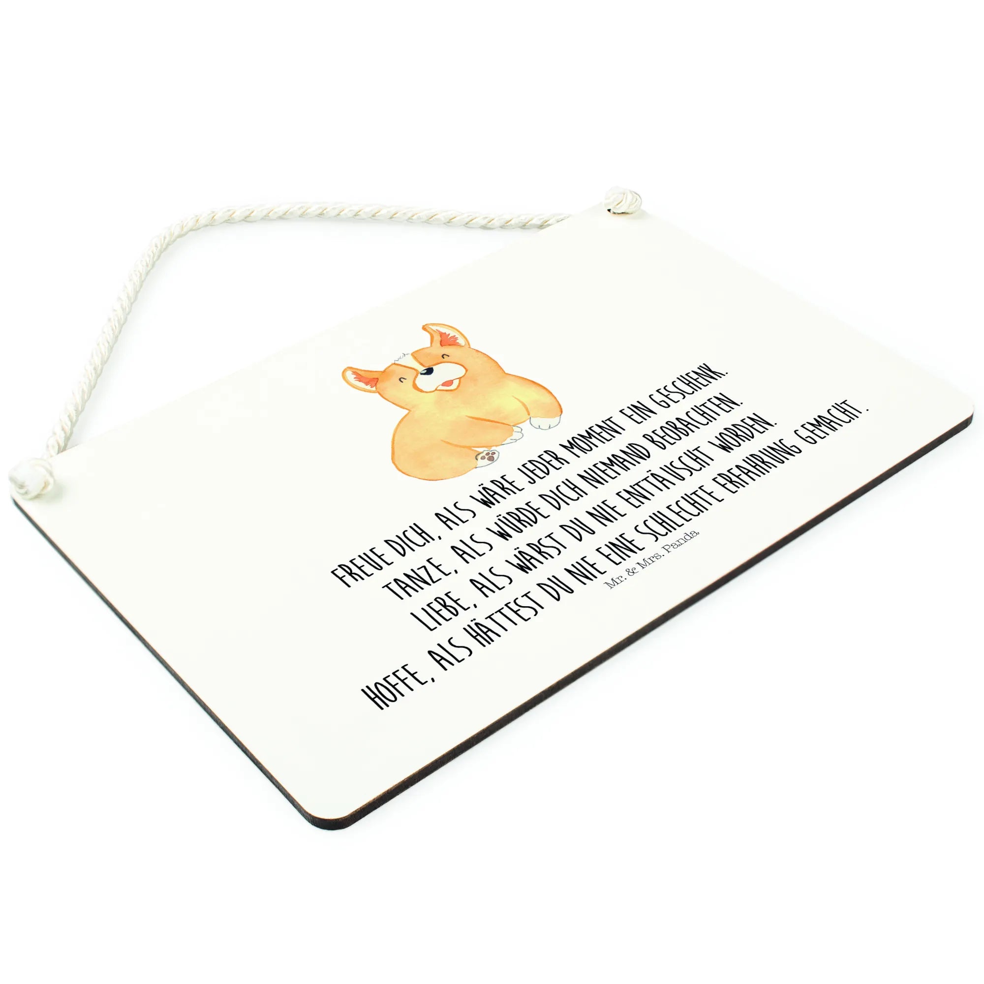 Unser Deko Schild Corgie aus der Hunde Kollektion von Mr. & Mrs. Panda bringt Herzlichkeit an jede Tür und an jede Wand. Das handgezeichnete Corgie-Motiv von Mrs. Panda verbindet sich mit dem nachdenklichen Spruch: „Freue dich, als wäre jeder Moment ein Geschenk. Tanze, als würde dich niemand beobachten. Liebe, als wärst du nie enttäuscht worden. Hoffe, als hättest du nie eine schlechte Erfahrung gemacht.“ Dieser Text macht das Schild zu mehr als einer Dekoration – es ist ein kleiner Glücksbringer für den Alltag.