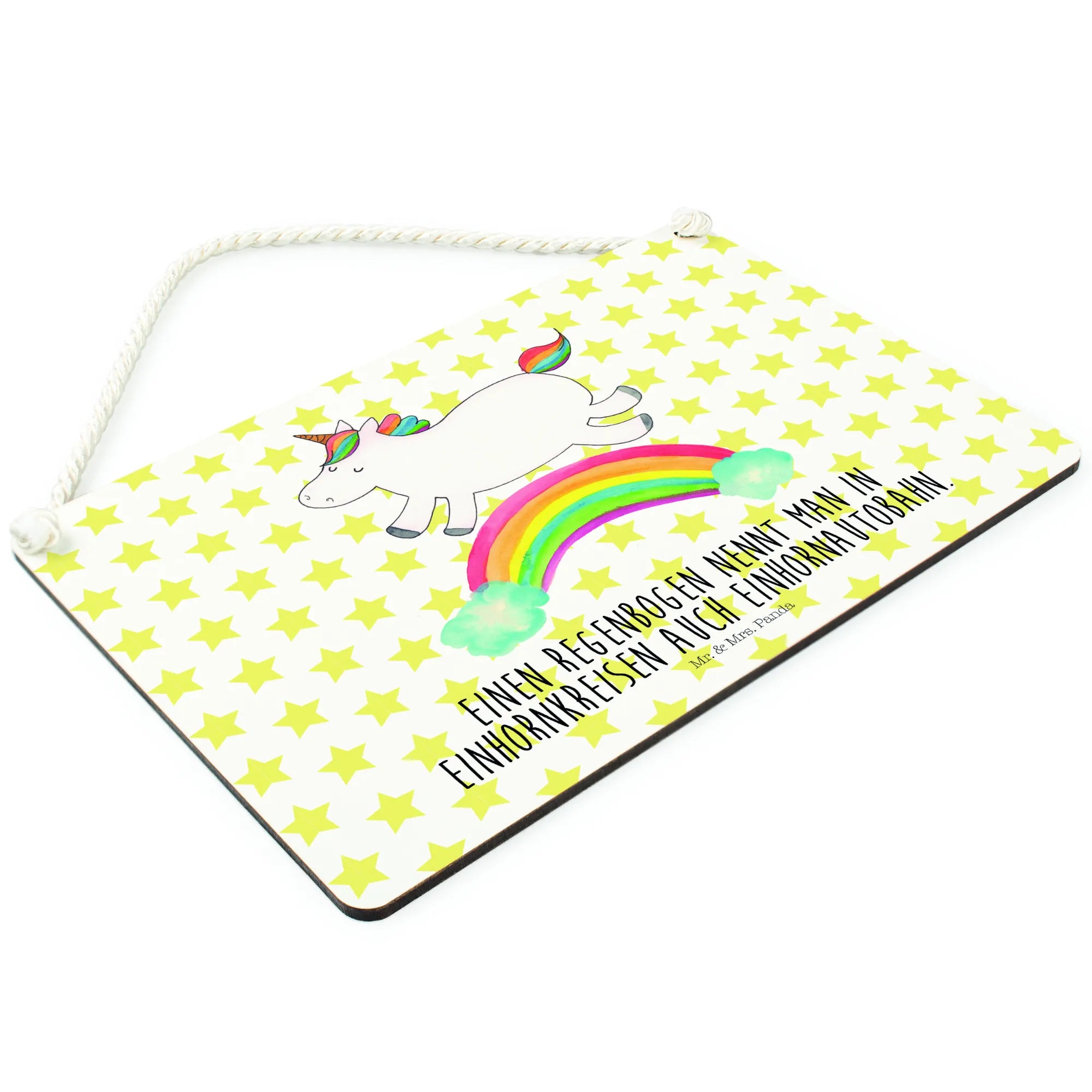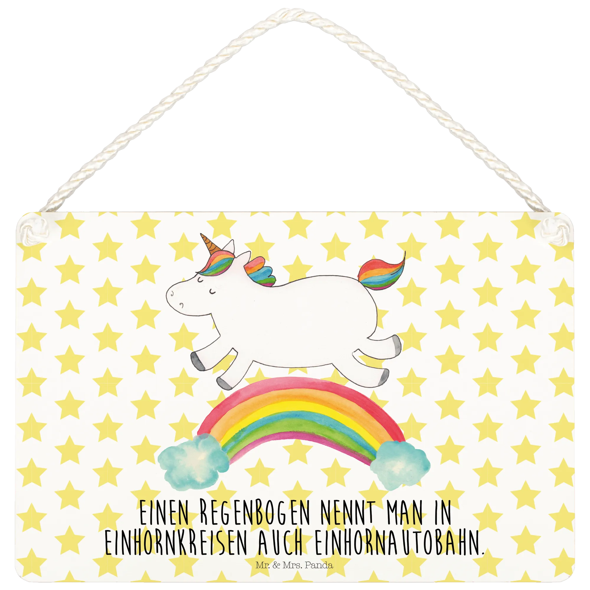 Das Deko Schild Einhorn Regenbogen von Mr. & Mrs. Panda ist das perfekte Geschenk für alle Einhornliebhaber und Freunde der magischen Dinge im Leben.