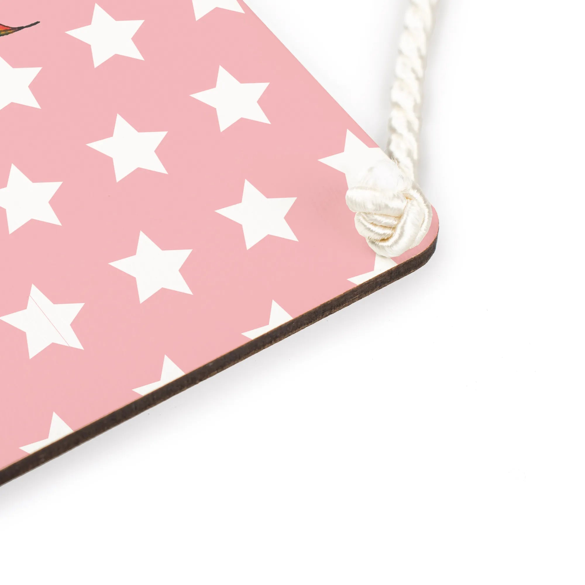 Die edel bedruckte Oberfläche aus hochwertiger Holzfaser macht das Schild nicht nur langlebig, sondern auch ein wunderschönes Dekorationselement. Die liebevoll designte Kordel sorgt dafür, dass das Schild schnell und einfach aufgehängt werden kann, egal ob im Wohnzimmer, im Flur oder im Kinderzimmer. Das Einhorn selbst repräsentiert Träume und Fantasie und lädt dazu ein, die eigene Vorstellungskraft zu entfalten – perfekt für kleine Abenteurer, die in die zauberhafte Welt der Einhörner eintauchen möchten.