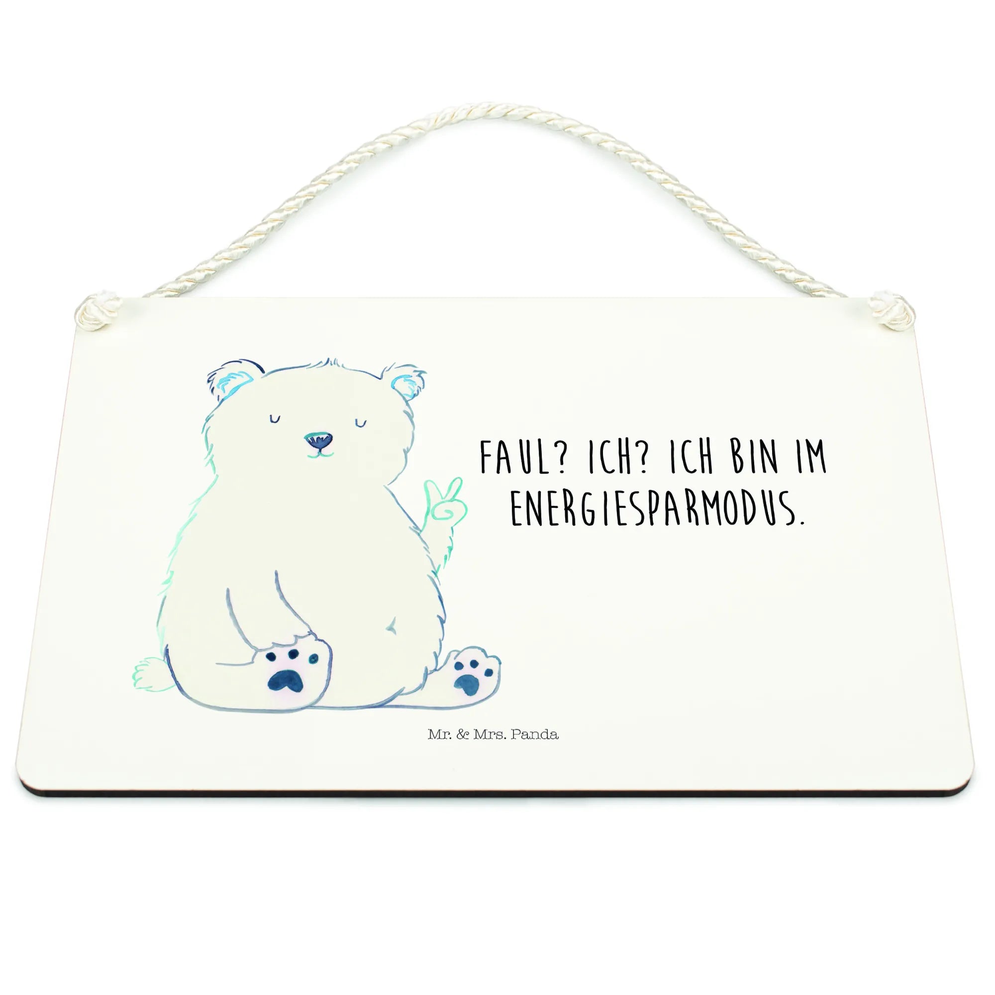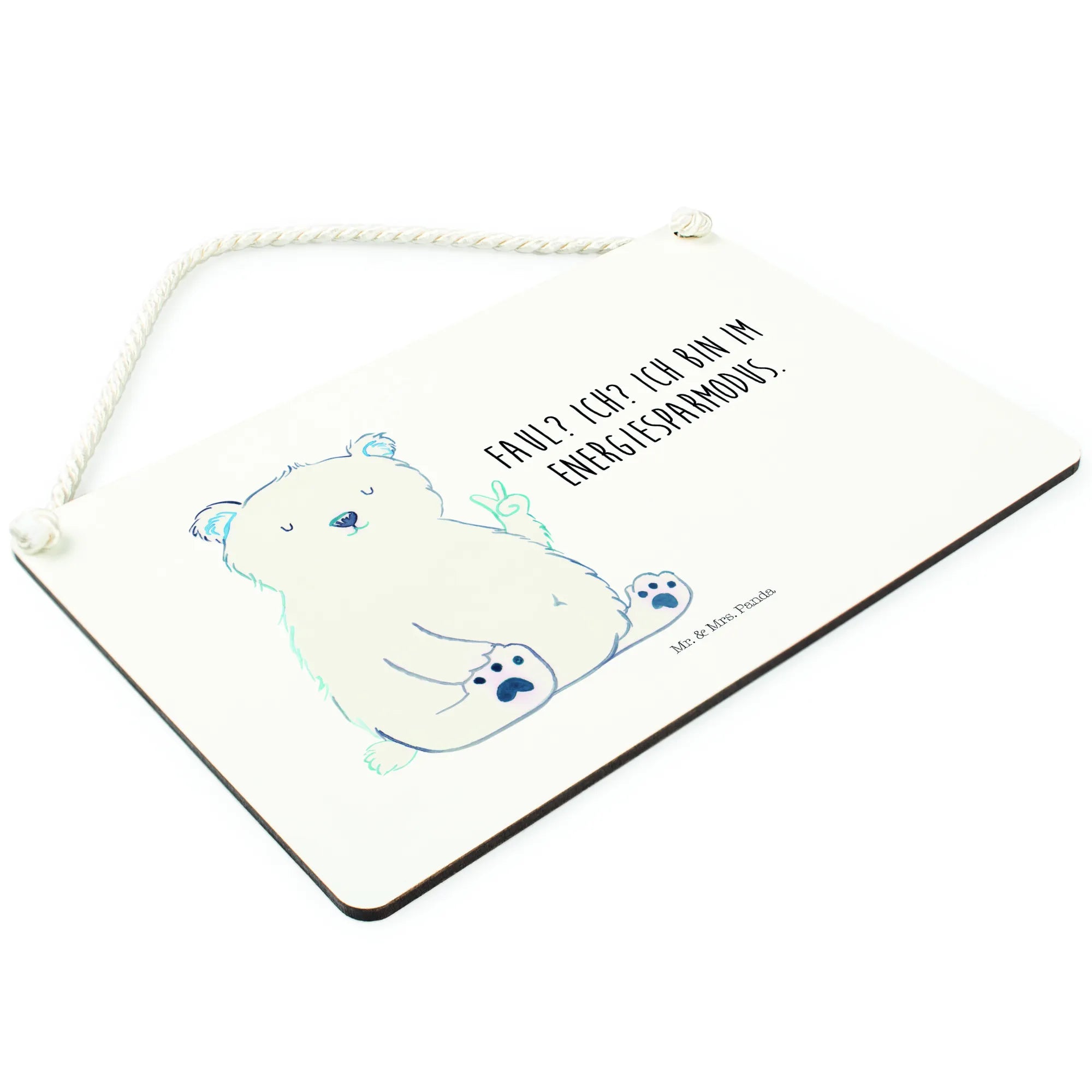Deko Schild Eisbär Faul - mit Spruch - Weiß
