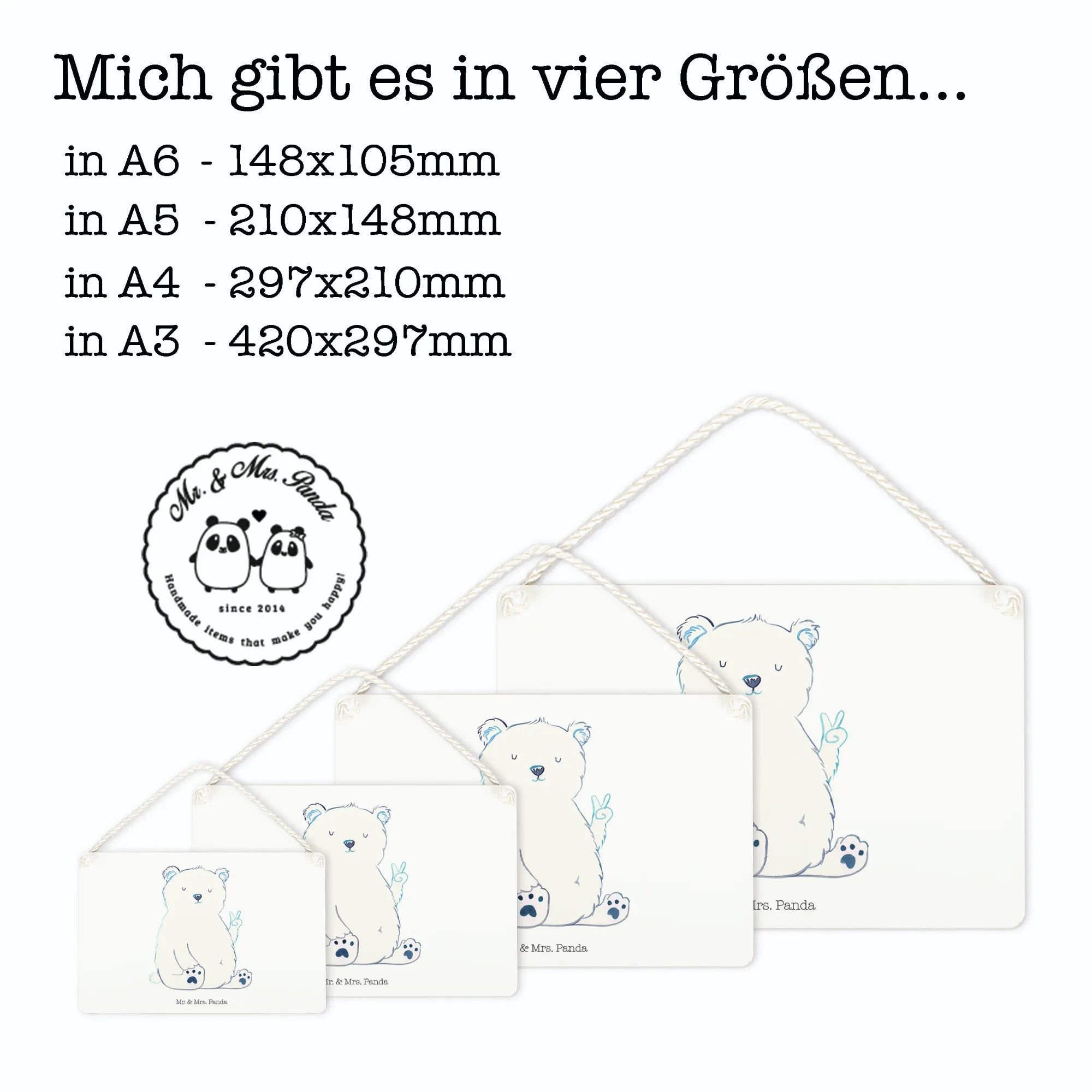 Die Maße von DIN A4 machen es einfach, einen passenden Platz zu finden. Es wird nicht nur als Wegweiser oder Dekoartikel genutzt, sondern wird auch zum kleinen Freund in deinem Alltag. Ideal geeignet für Arbeitsplätze, um deinen Schreibtisch zu verschönern oder direkt an deiner Tür, um deinen Gästen ein herzliches Willkommen zu bieten. Hol dir ein Stück nordische Gemütlichkeit nach Hause und erfreue dich am Anblick unseres bezaubernden Eisbären. Einfach aufhängen und genießen! Dieses Deko Schild von Mr. & Mrs. Panda freut sich darauf, dein Zuhause zu bereichern und bringt den perfekten Hauch von Bärenzauber in dein Leben!